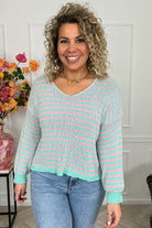 Belle Cotton Striped Sweater - Turquoise/Pink