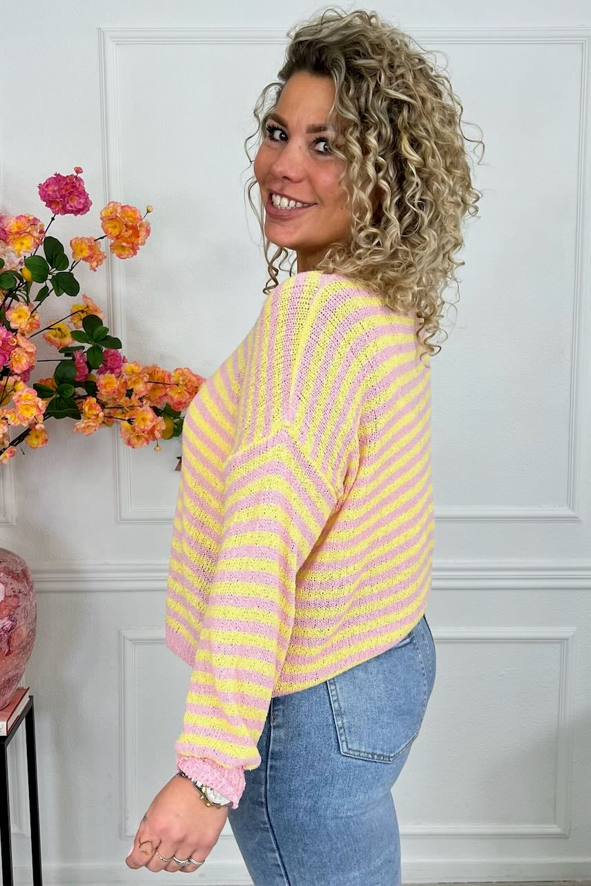 Belle Cotton Striped Sweater - Yellow/Pink