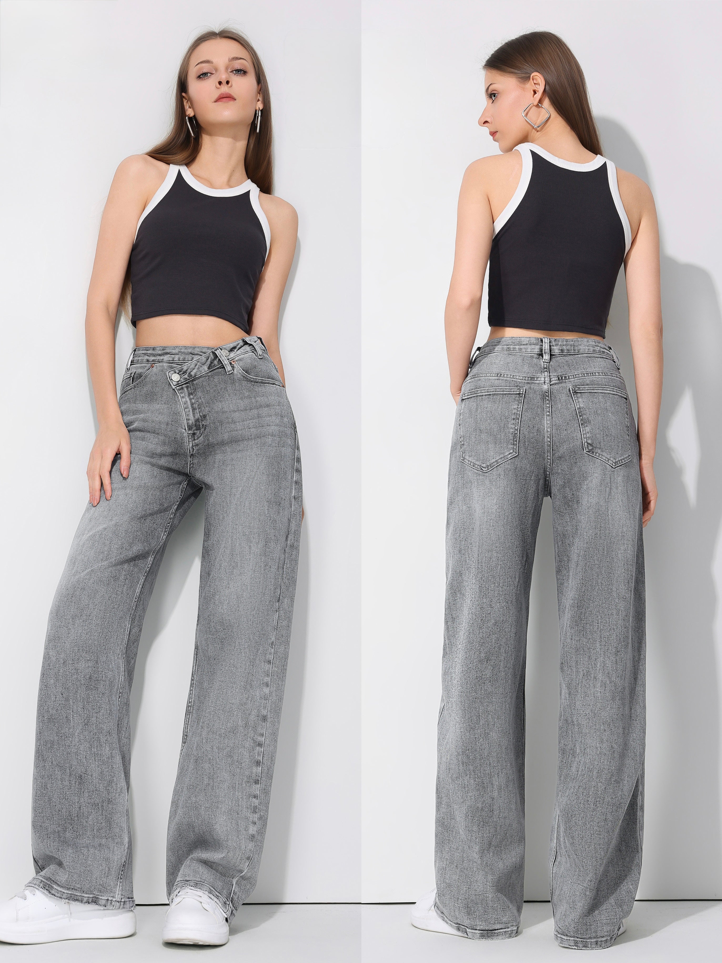 Bobby Wide Leg Jeans - Grey