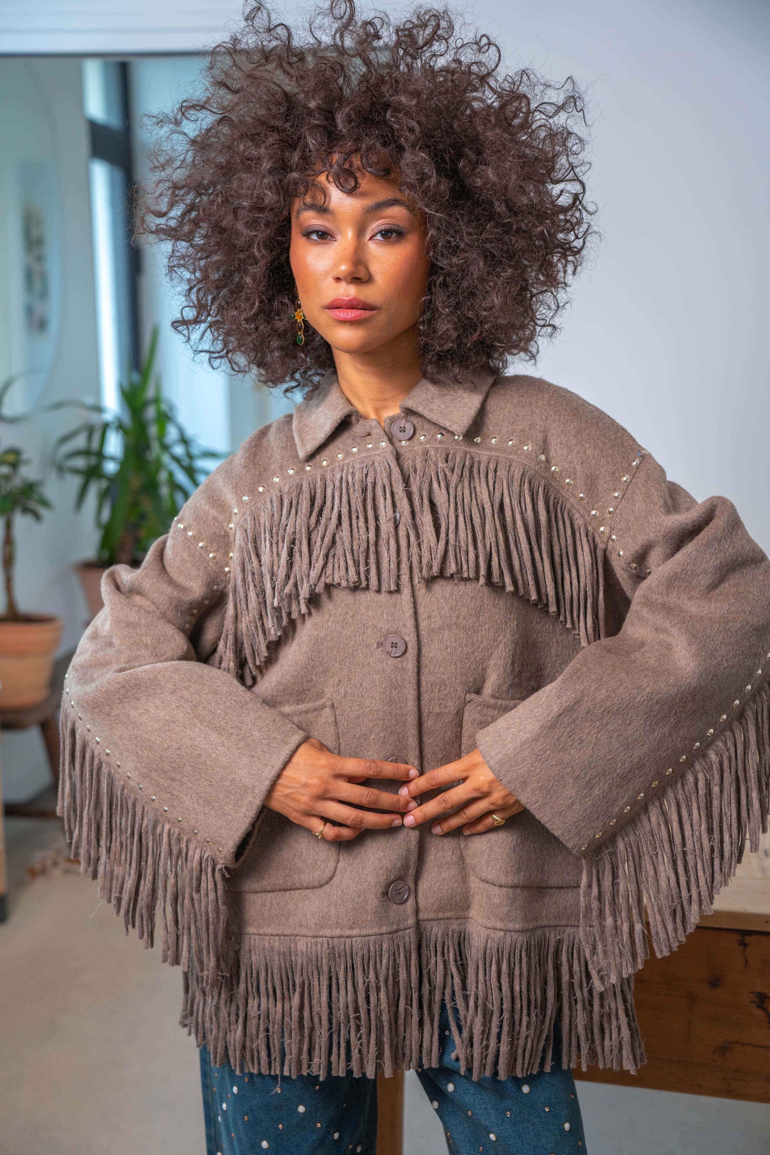 Bohemian Fringe Jacket - Taupe