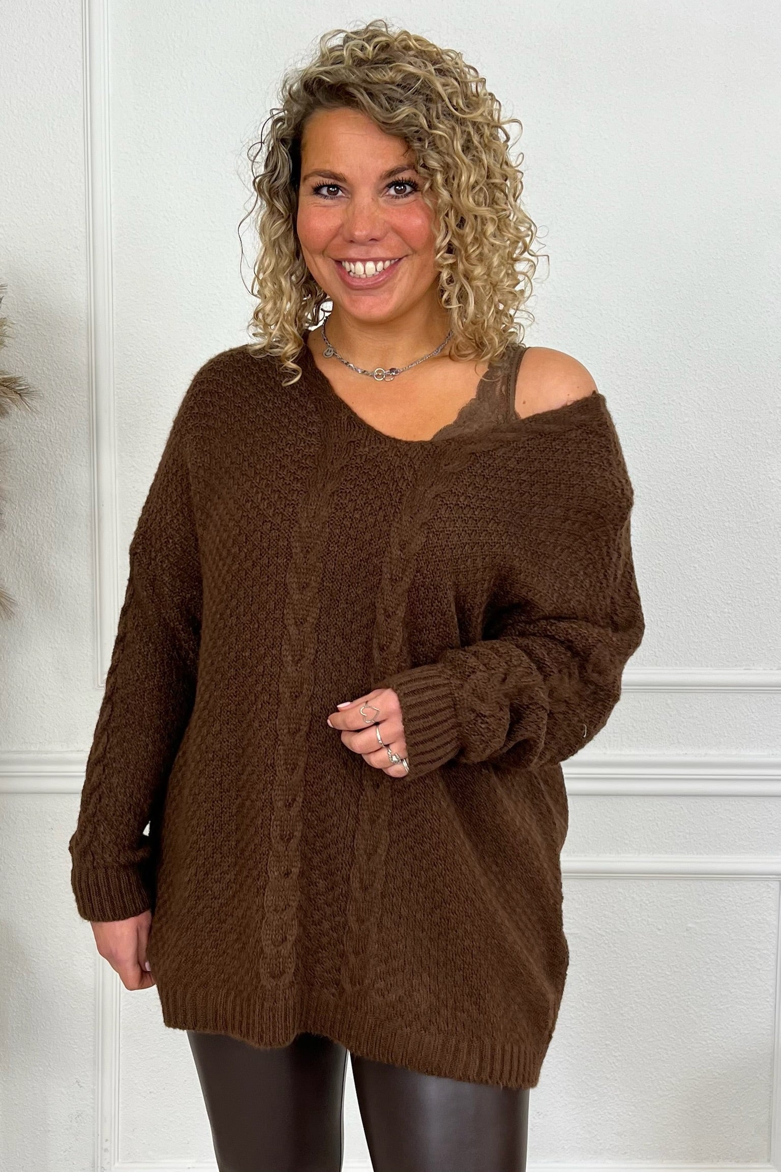 Ontzettend Leuke en Warme truien, met een super leuke strik op de achterkant! Shop de braid strik back sweater nu in brown!