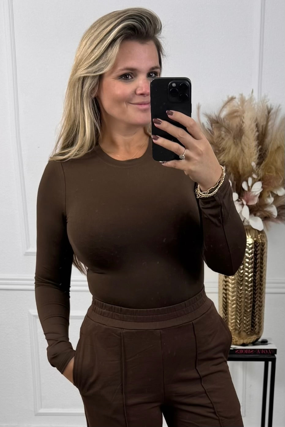 Wat een heerlijke body! Goed te combineren, nooit meer een blote rug! Shop hem in brown!