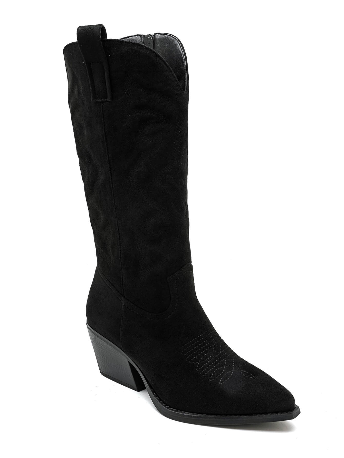 Classic Suedine Cowboy Boots - Black