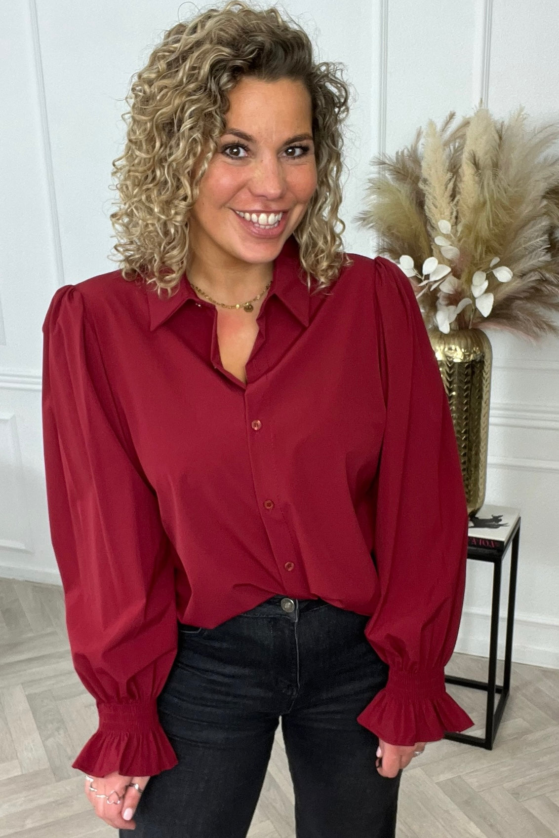 Perfecte basic blouse voor een alle daagse outfit. De blouse heeft een leuke ruffel aan de mouwtjes wat een leuke touch eraan geeft! Shop nu de classy smock sleeve in red.