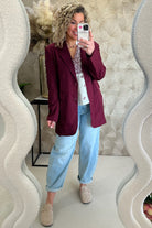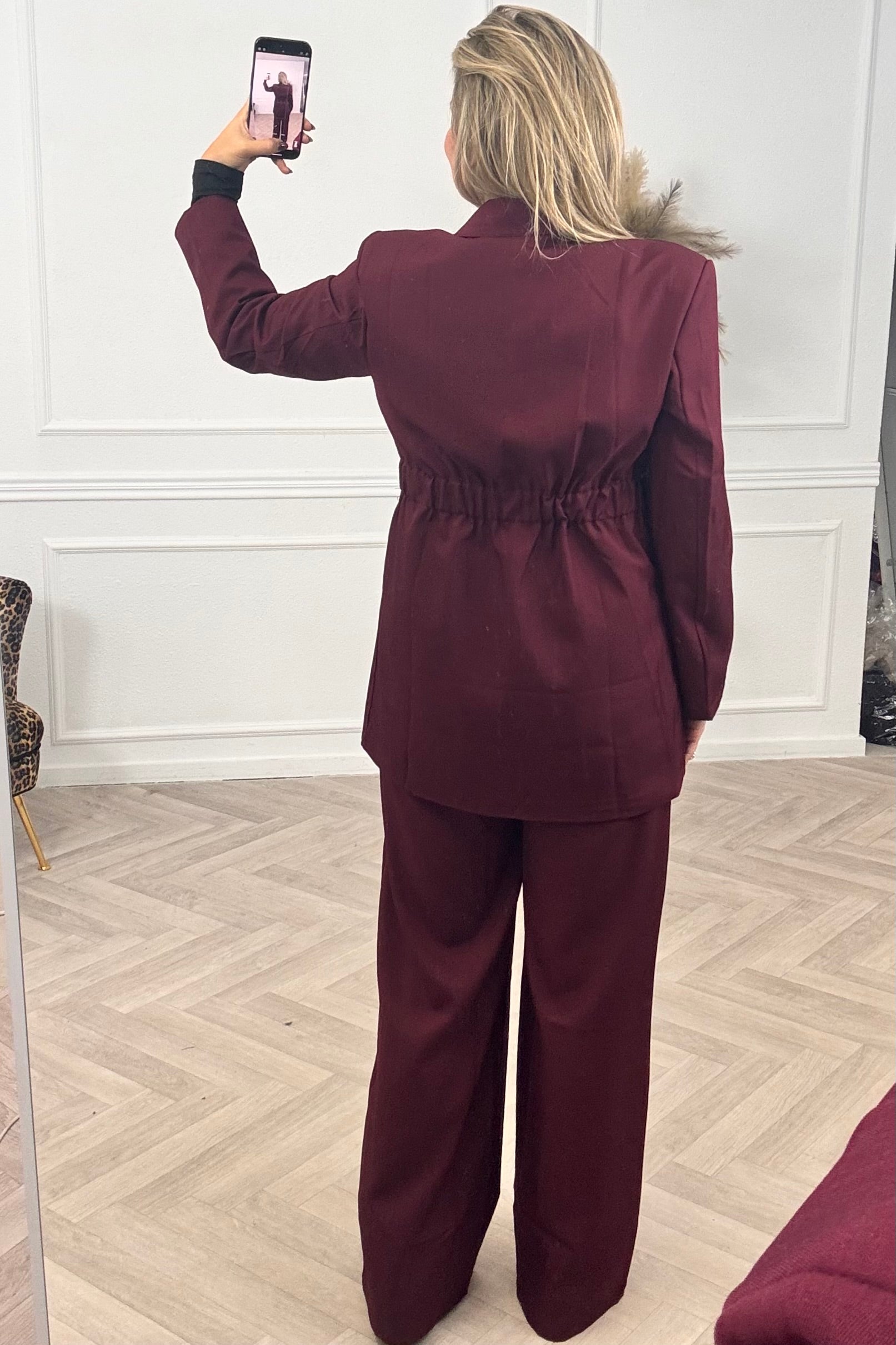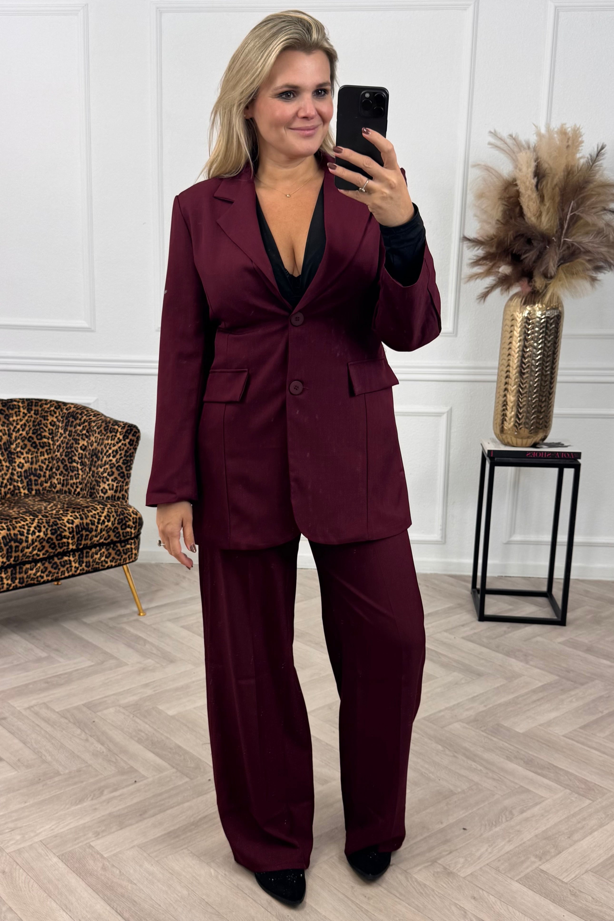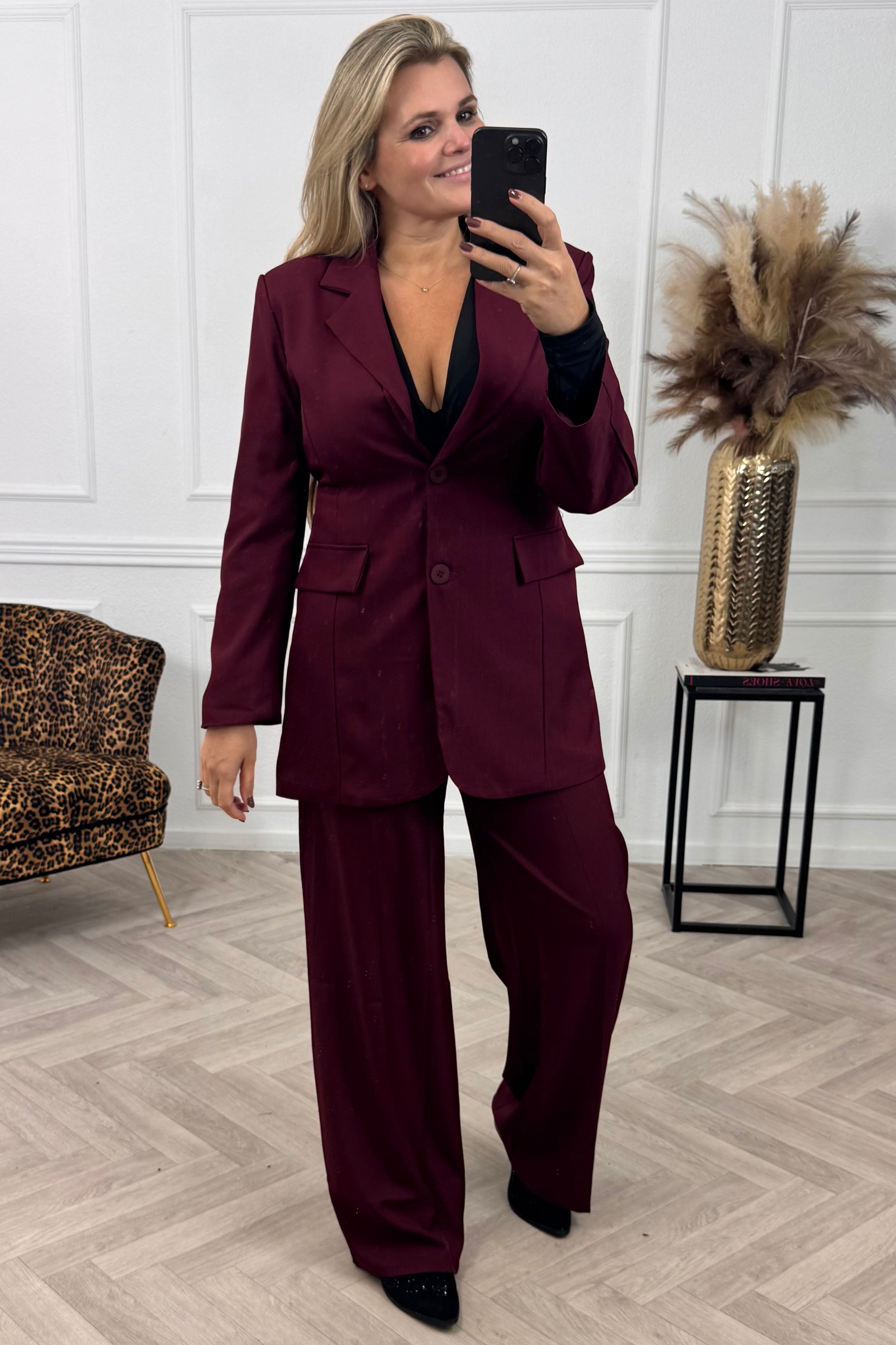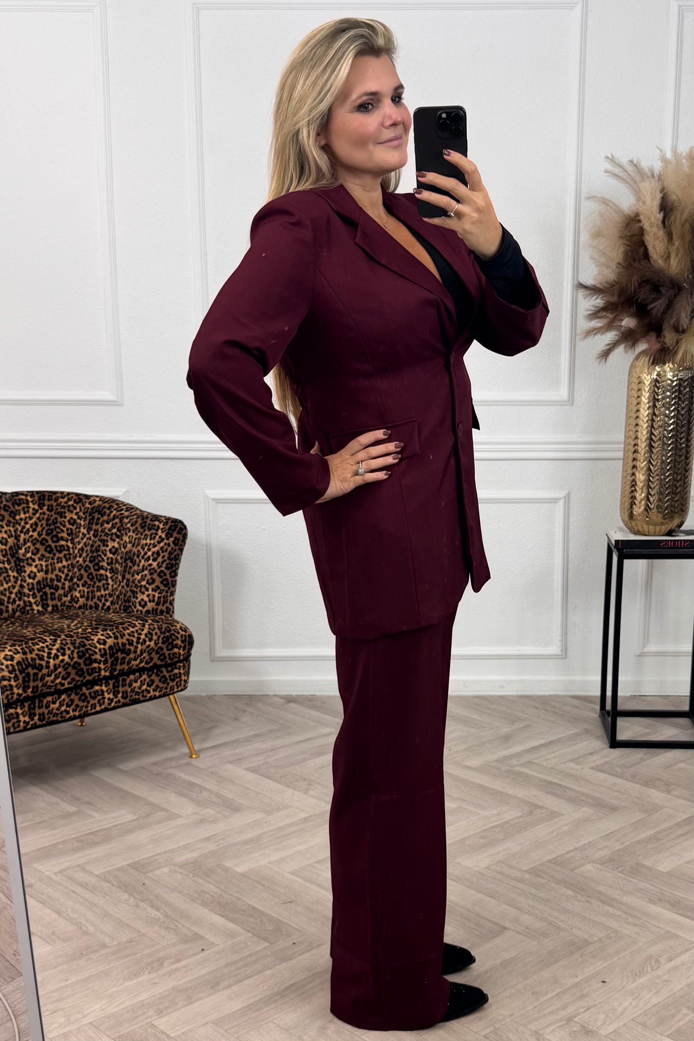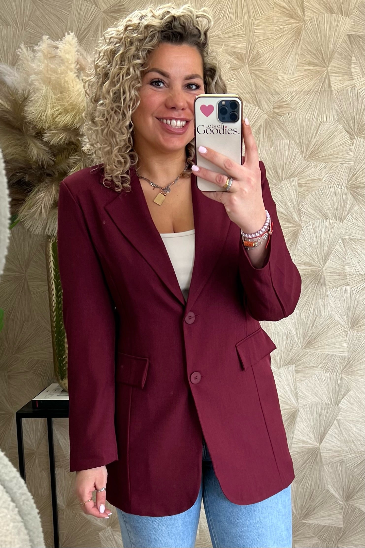 Shine in onze classy collectie! Het elastiek op de rug van deze blazer zorgt voor een fijne taille! Te shoppen in verschillende maten, shop hem in bordeaux!