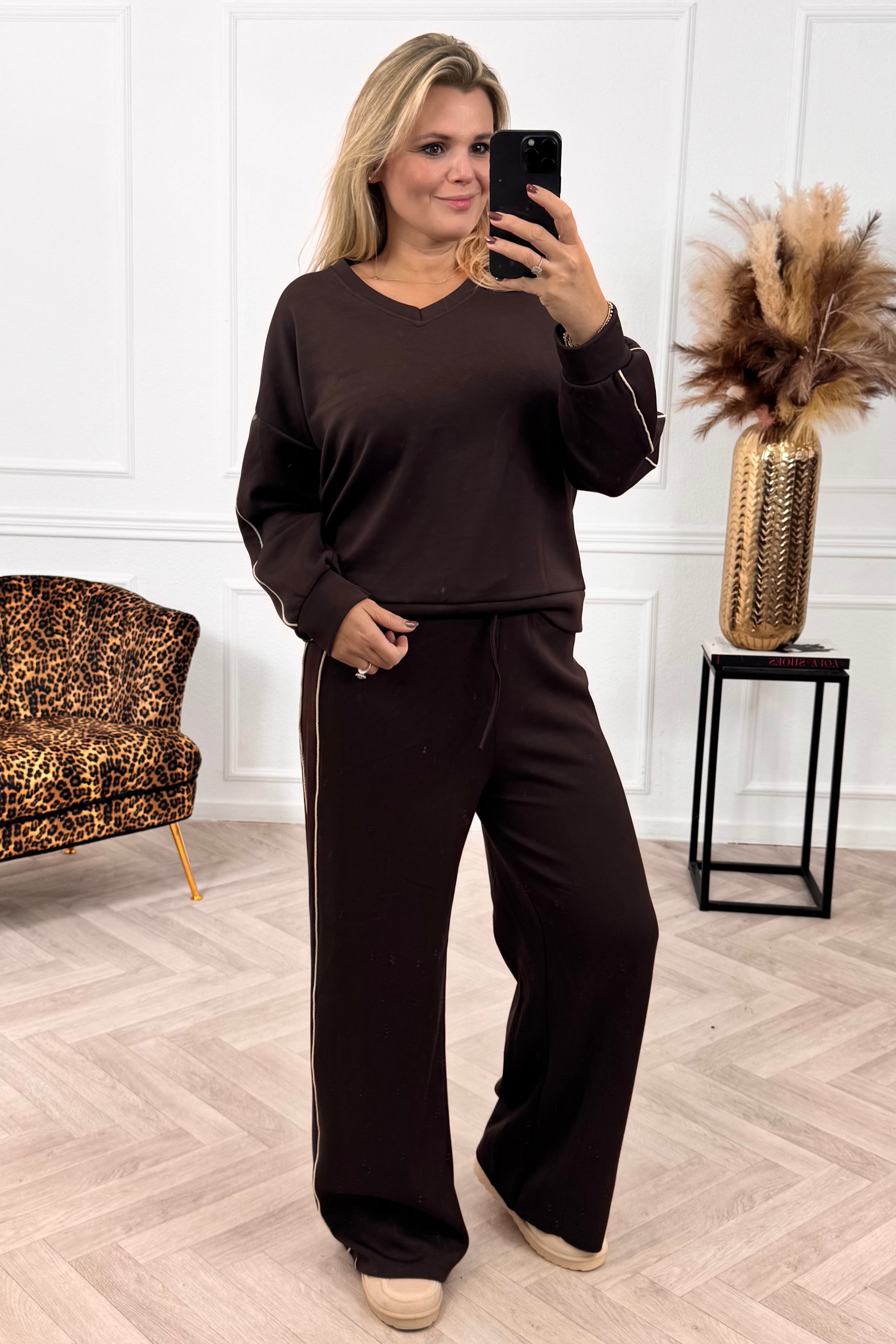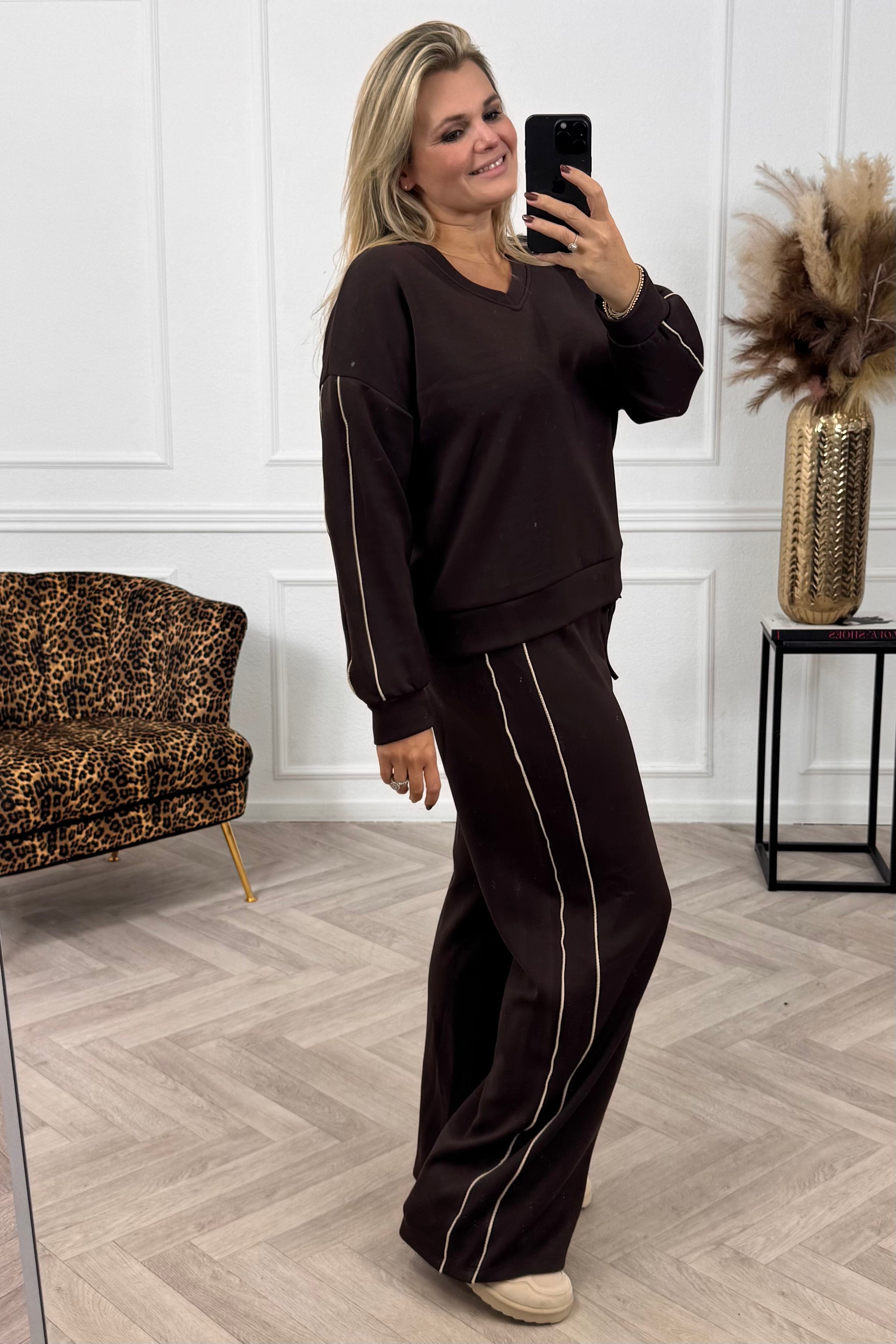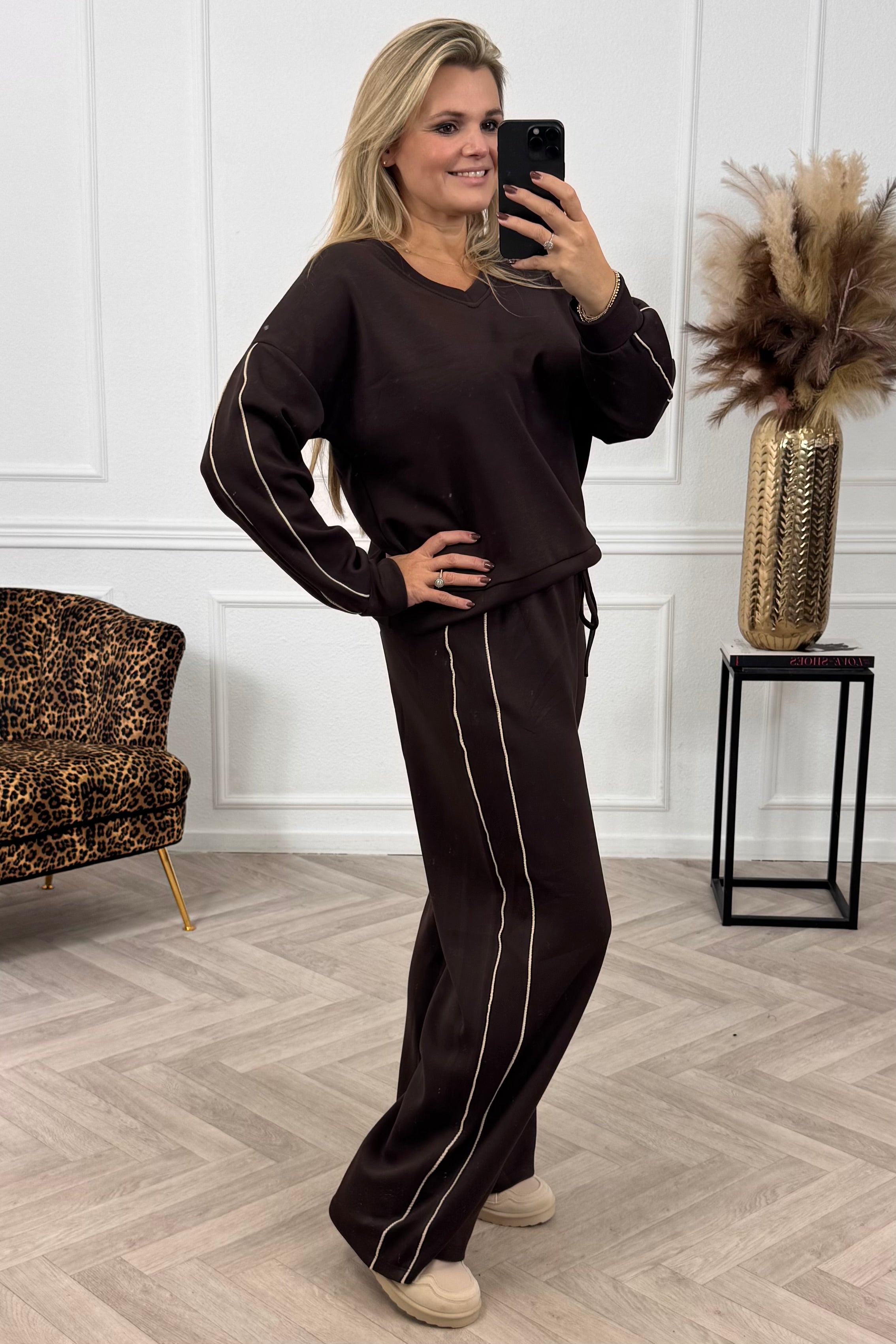 Een heerlijke jogging set, dat er ook nog eens leuk uitziet! shop de comfy stripe set nu in brown!