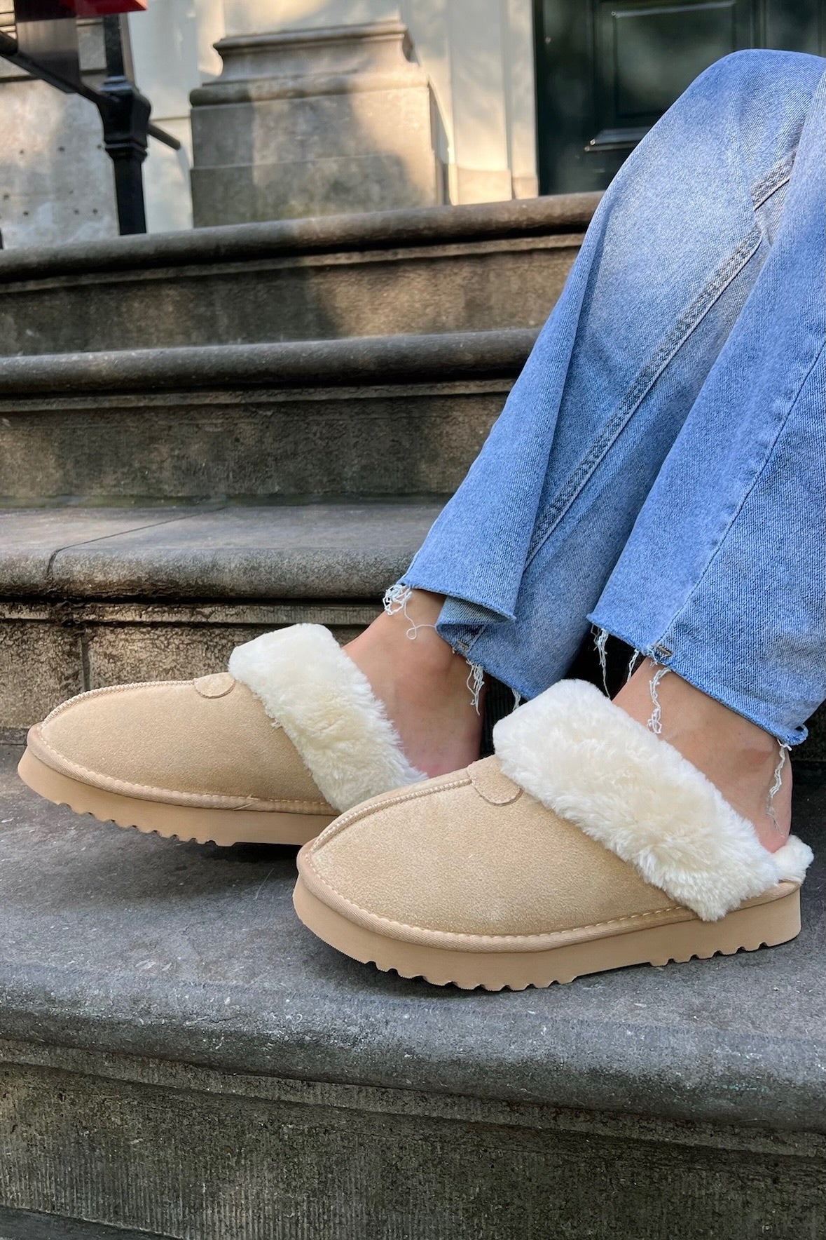 Deze heerlijke sloffen gemaakt van echt leer zorgen voor een hele comfy winter! Heerlijk zacht en helemaal on trend! Shop ze in beige!