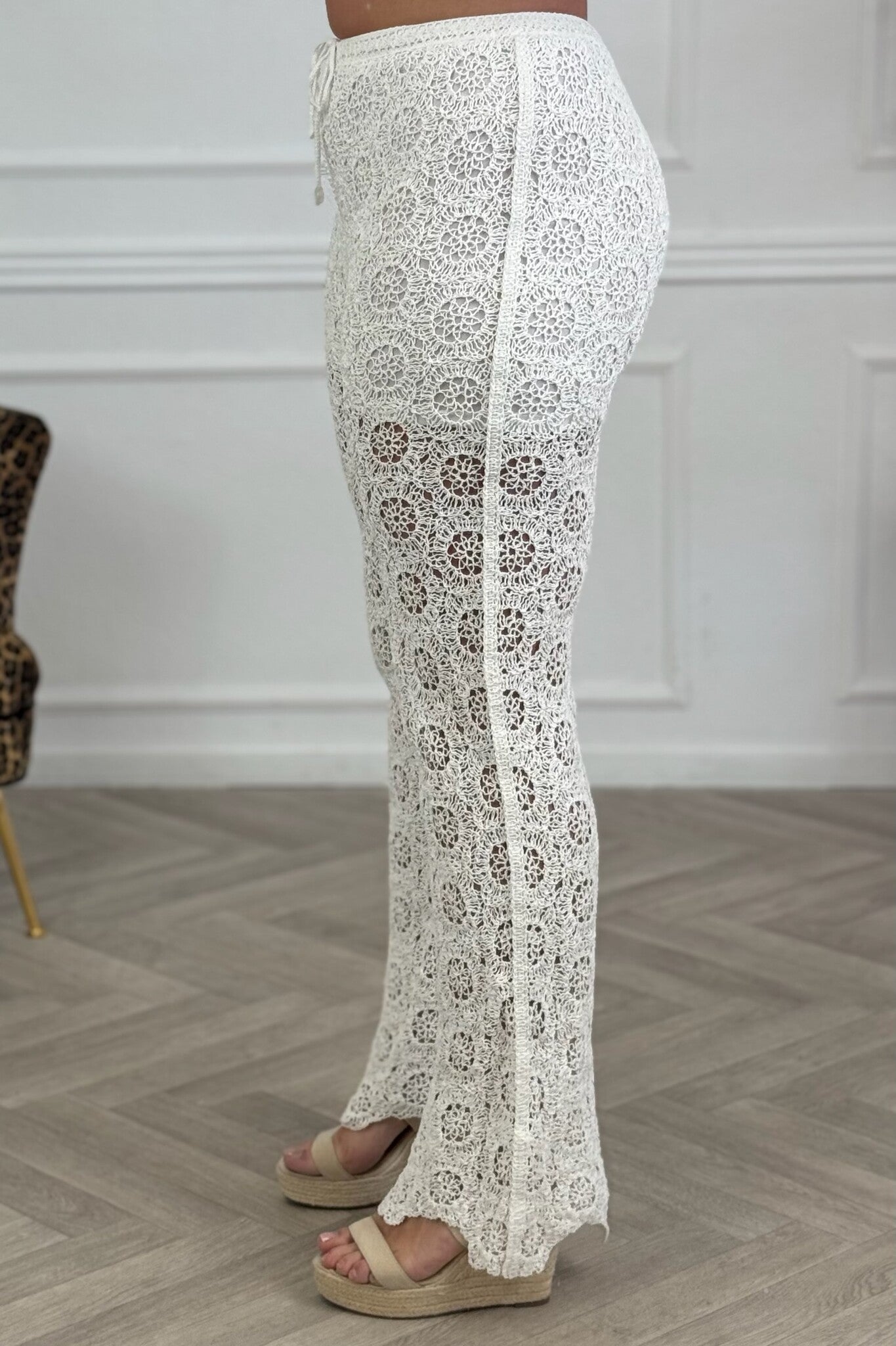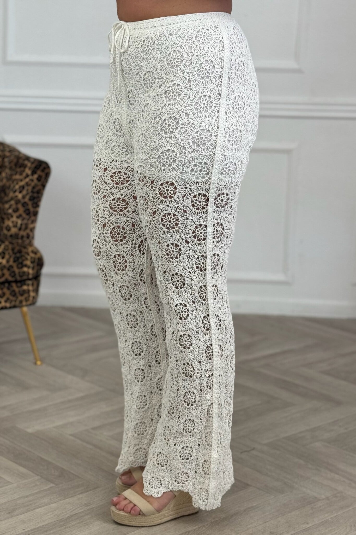 Deze heerlijke crochet broek is ideaal voor een dagje op het strand! Shop hem in white.
