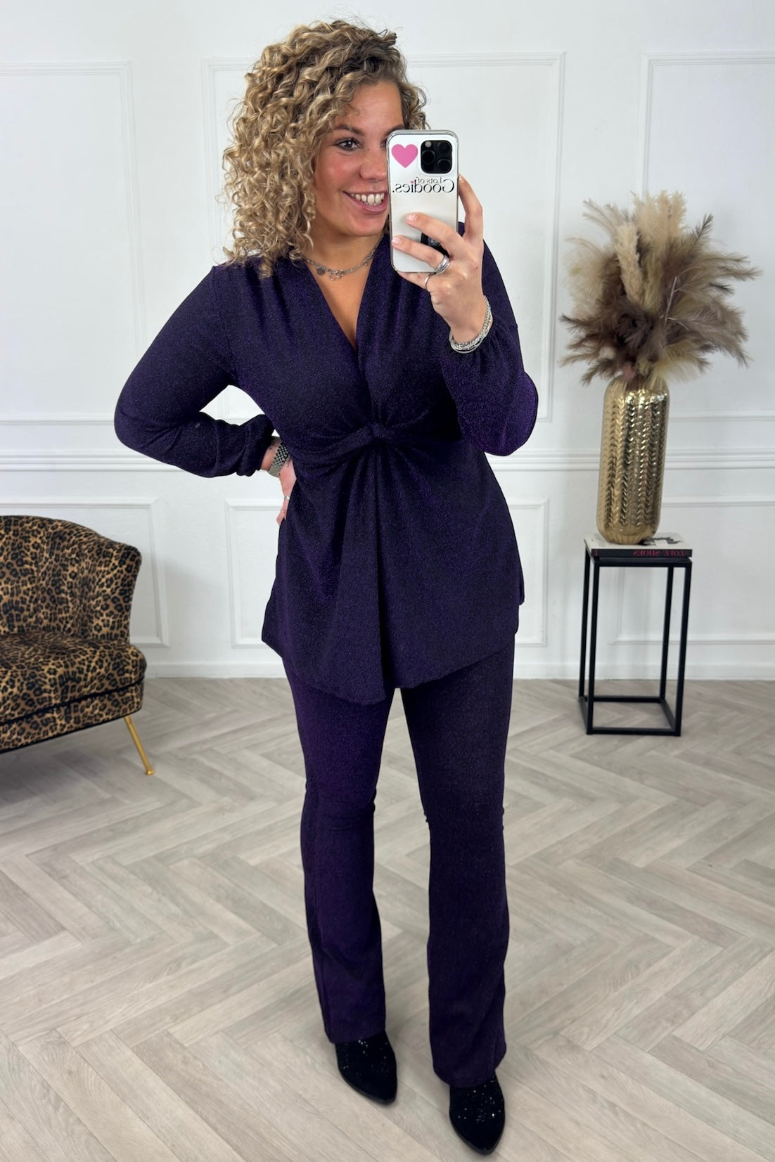 Met deze curvy glitter pants ben je helemaal glam ready! Met fijne zakken en door de elastieke band te dragen tot maat 46! Shop hem in purple!
