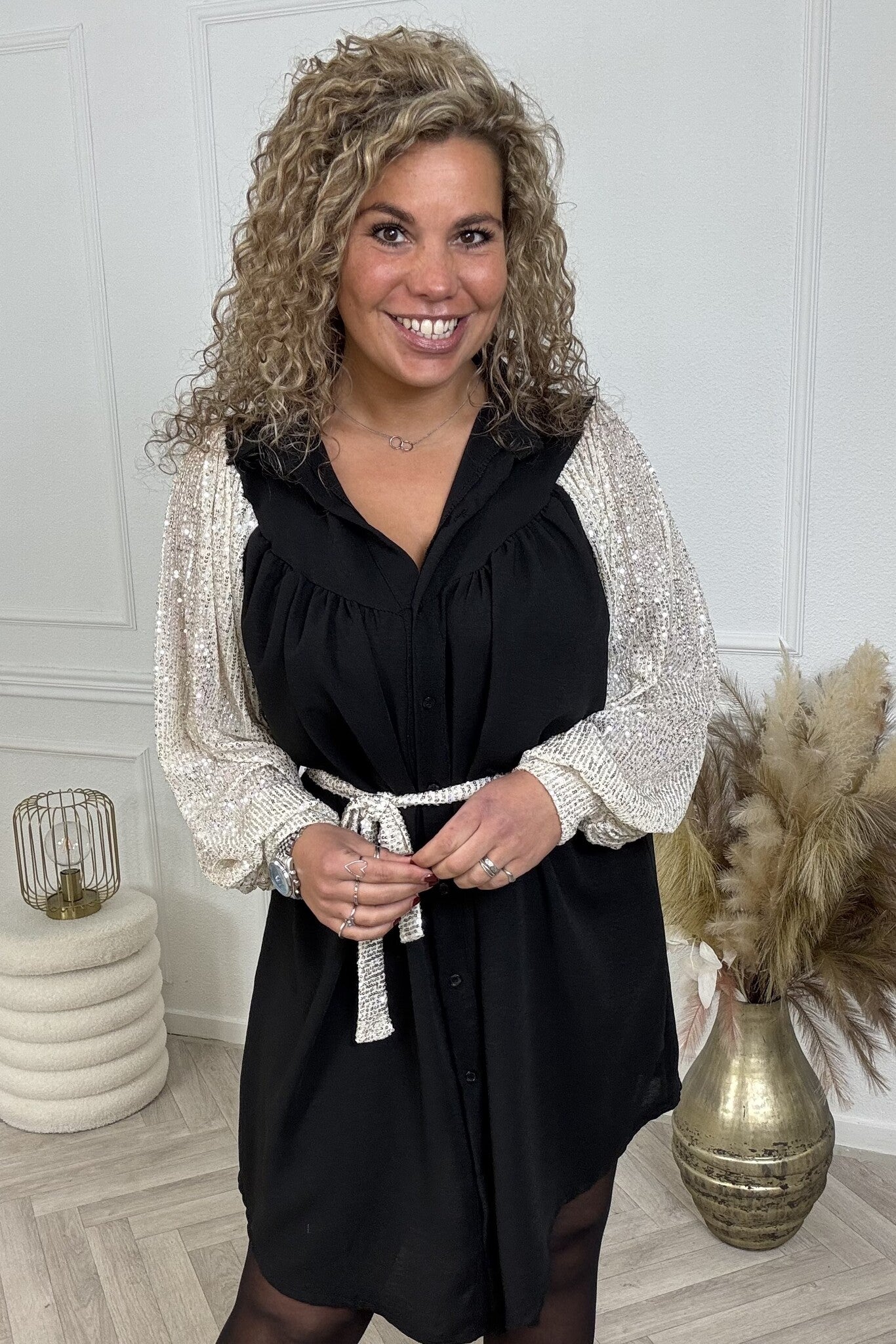 Dé bestseller van ons eigen label! Het design is nog verder verbeterd, net als de kwaliteit. En: verkrijgbaar in nog meer kleuren en maten! Shop onze Sequin Sleeves Dress nu online in trendy black/pearl!