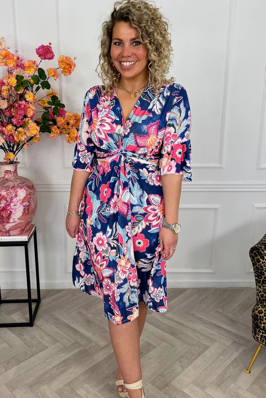Onze signature dress is terug! Shop onze short knotted dress online in nieuwe prints! Shop hem in onze floraprint in kobalt/pink!