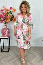 Curvy Short Knotted Forest Dress - Pink