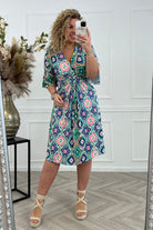Curvy Short Knotted Spring Dress - Blue/Pink/Green