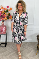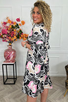 Curvy Short Knotted Tenerife Dress - Black/Pink