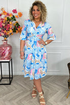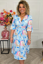 Curvy Short Knotted Tenerife Dress - Light Blue/Pink