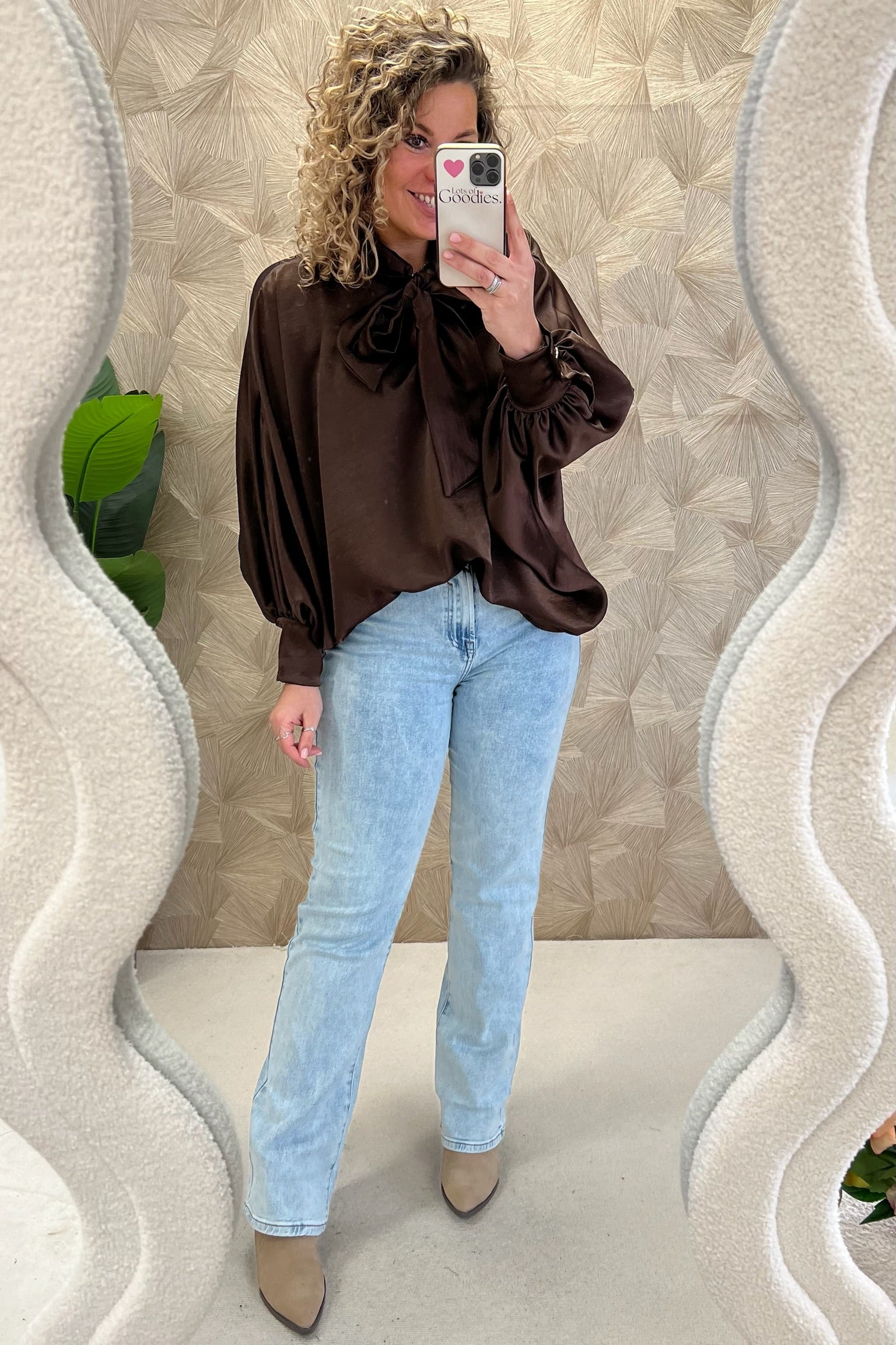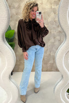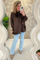 Curvy Silk Bow Blouse - Brown