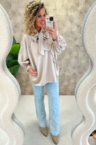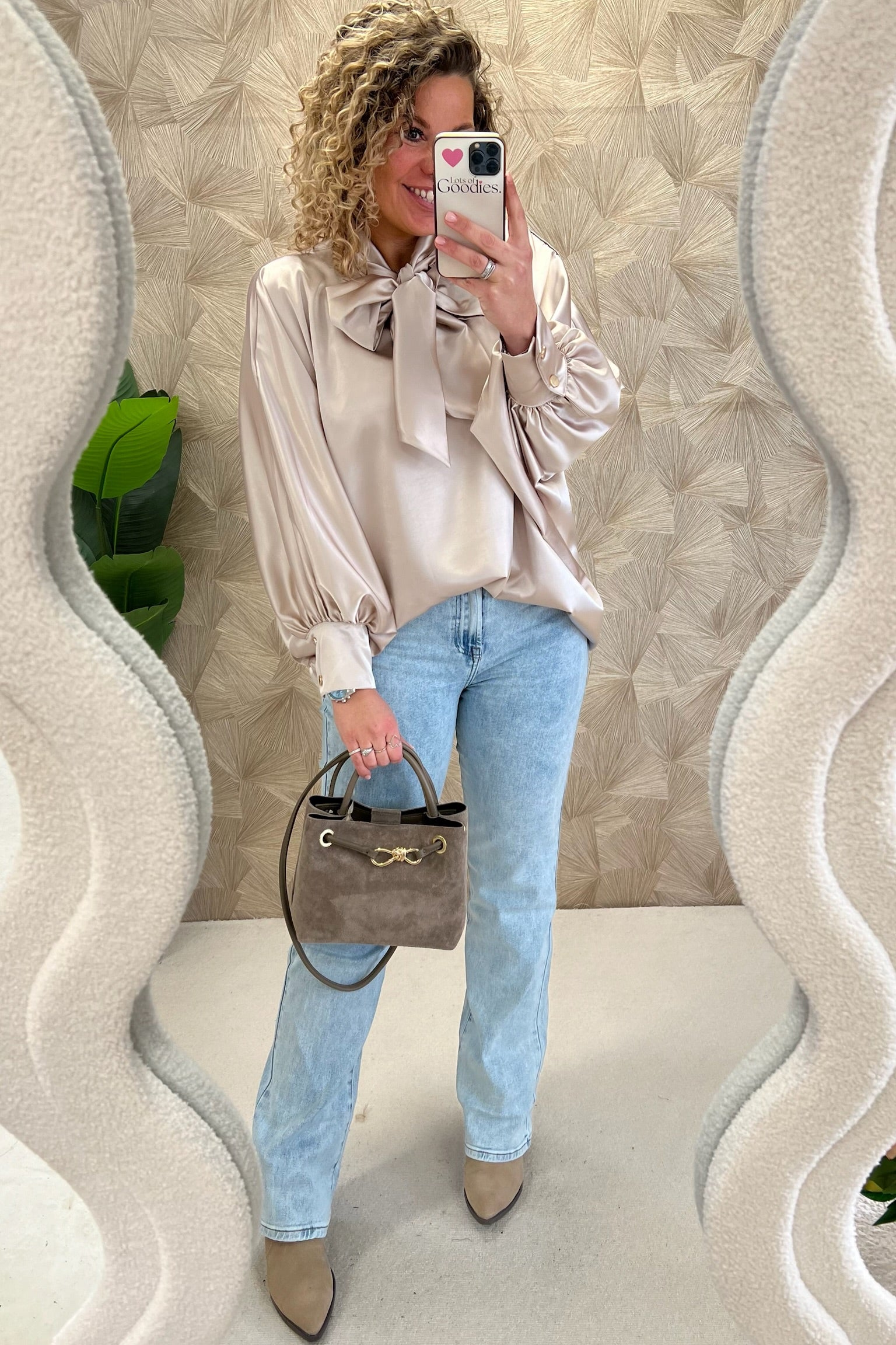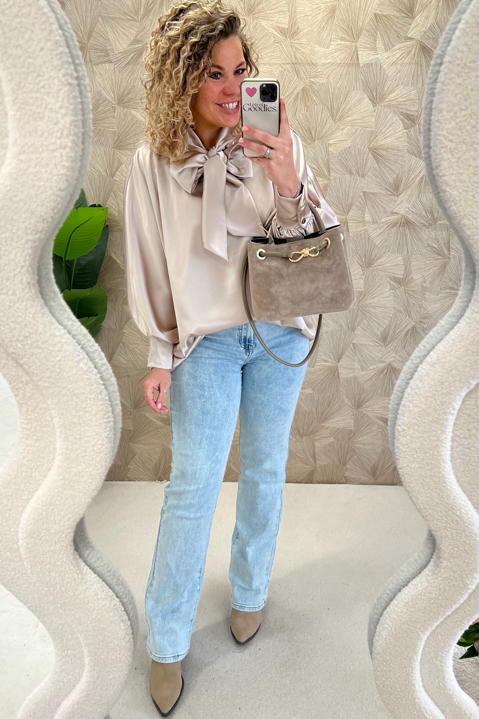 We hebben een superleuke classy blouse binnen met een chique strik detail! Shop hem nu in Champagne.