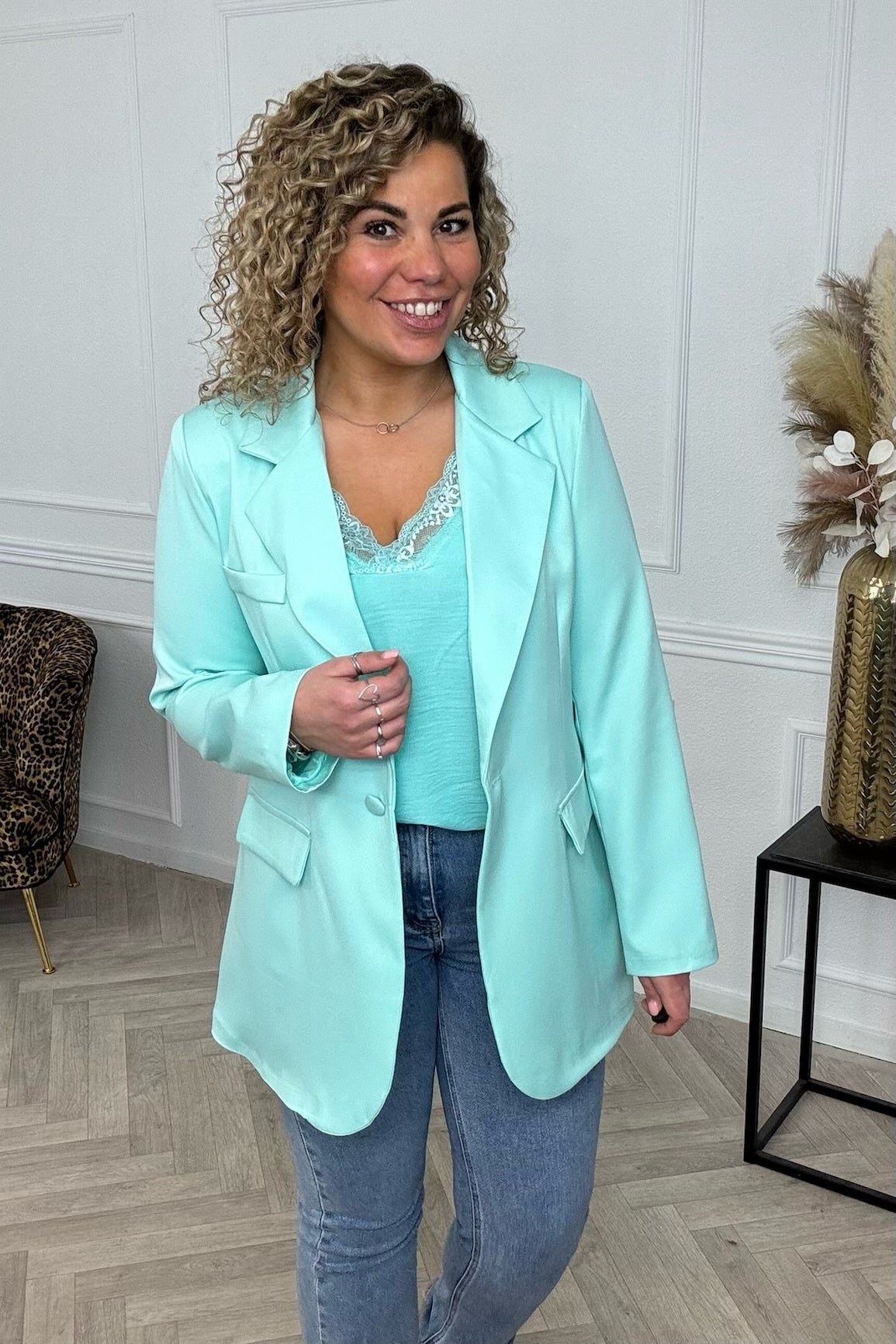 Materiaal: 90% Polyester, 10% Elastane Model/pasvorm: Het model is 178cm draagt van dit item een curvy size 44-46 (XXXL in het label). Voor haar zou de regular ook goed zijn (XXL in het label).Bij de kleinste maat staat XL in het label, maar deze is te dragen van maat 36-40.Let op: het is een oversized blazer!
