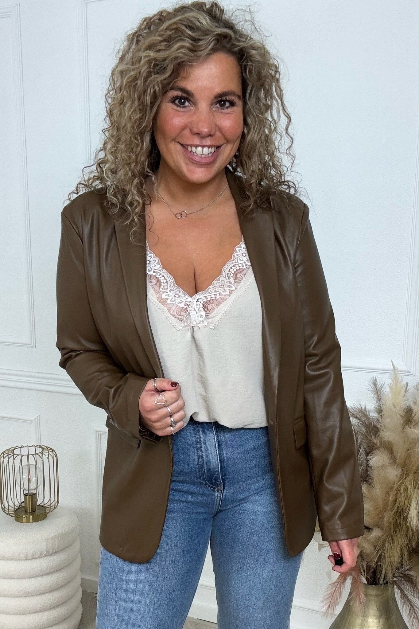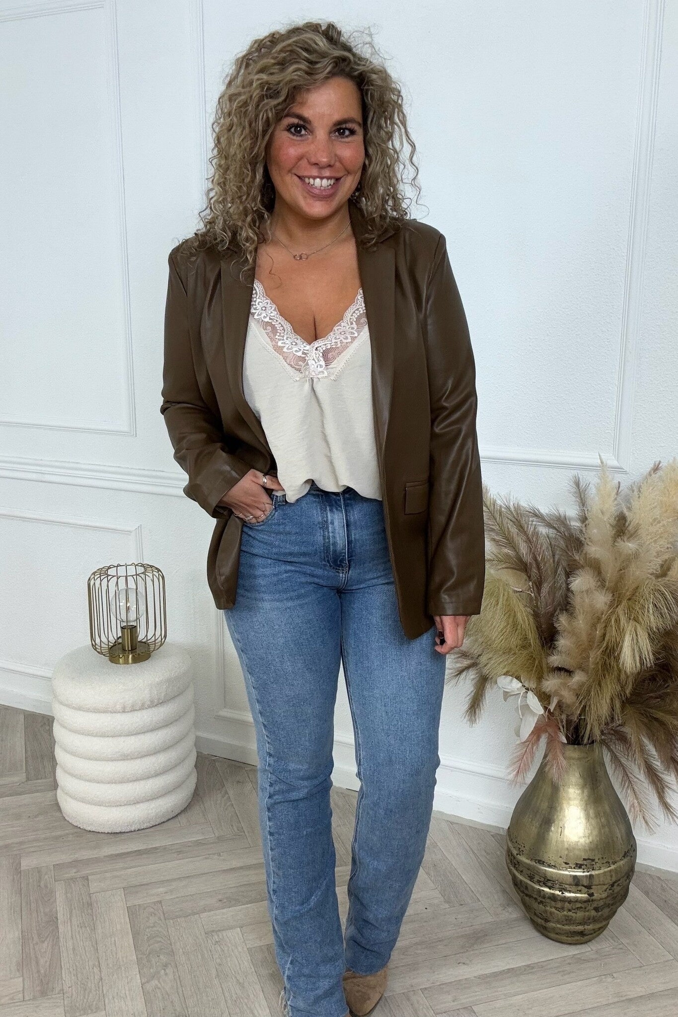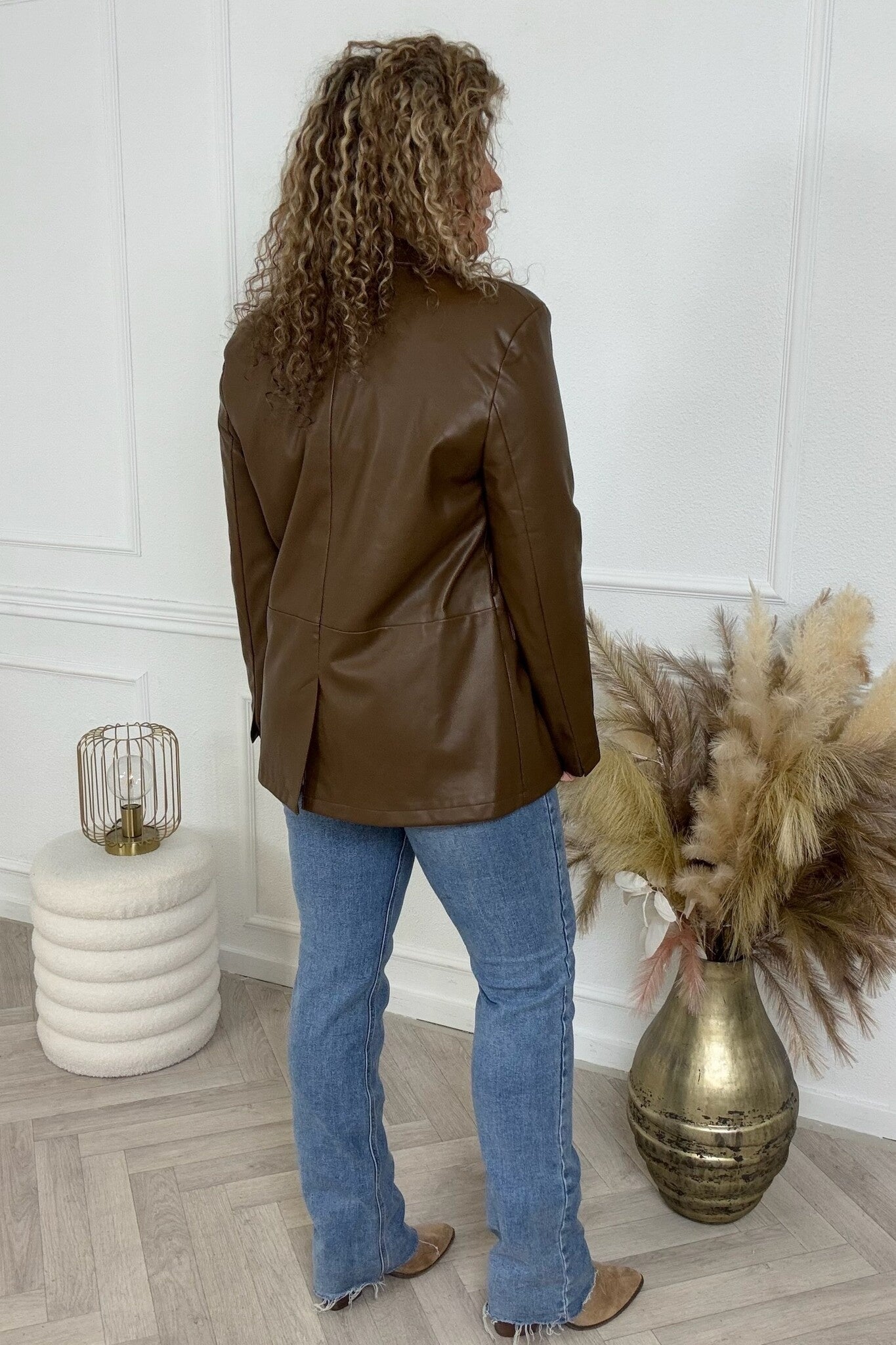We hebben nu een geweldige blazer in een leer lookje! Shop hem nu in coffee.