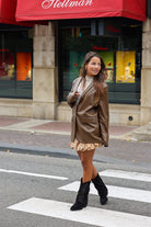 Faux Leather Blazer - Coffee