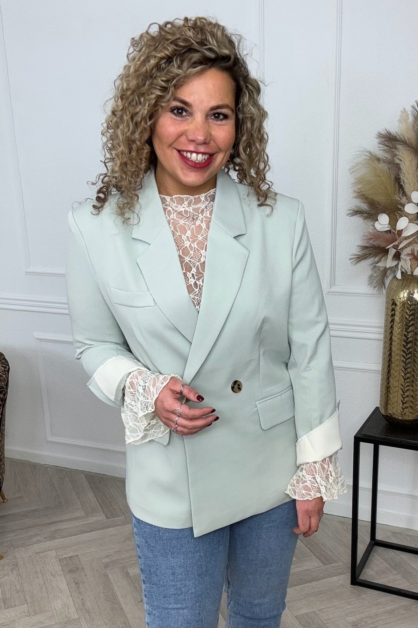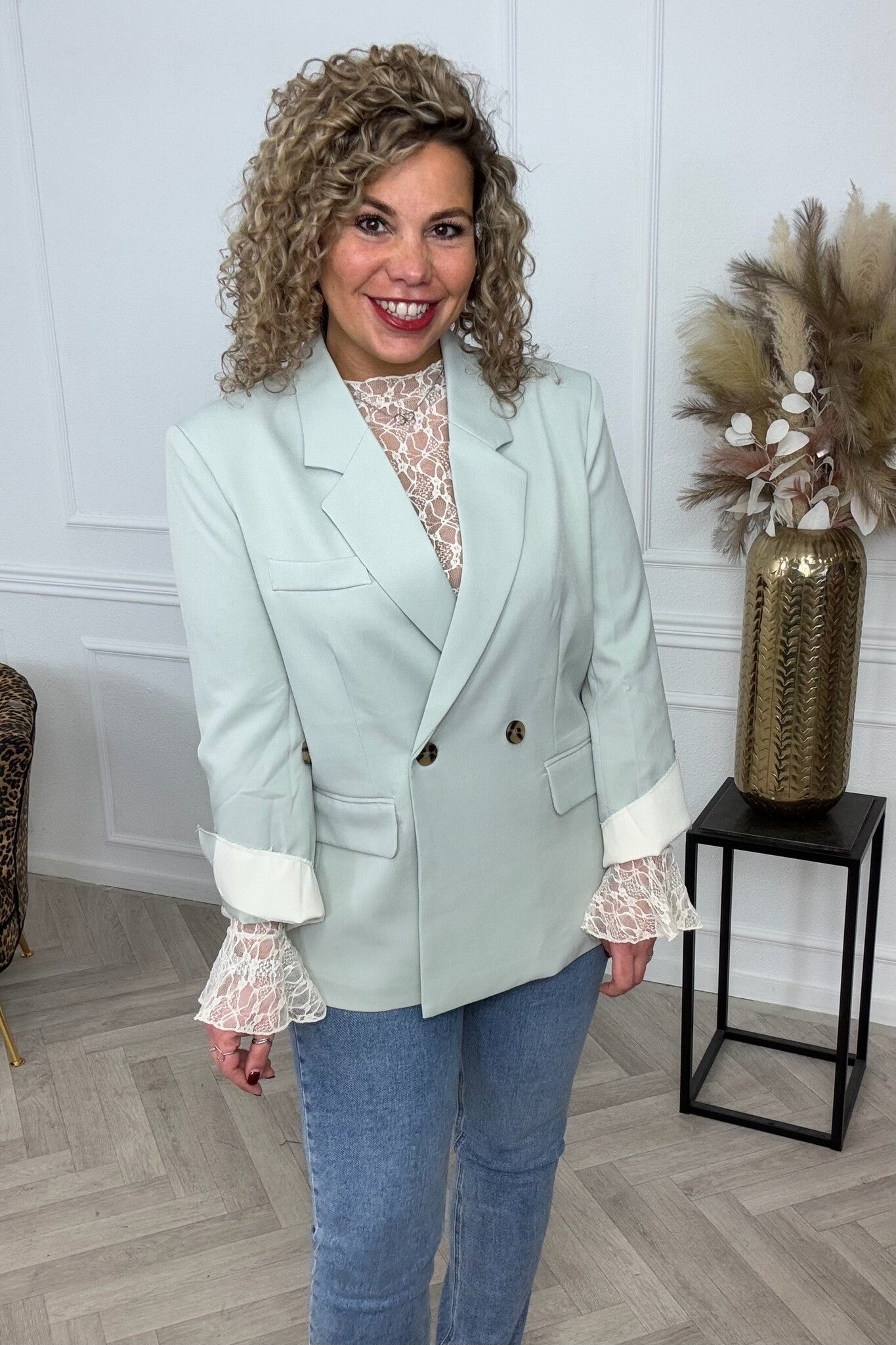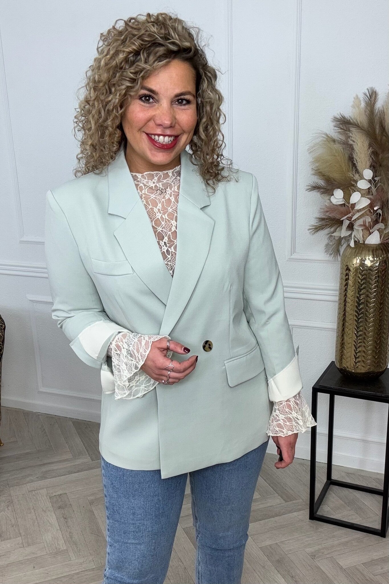 We hebben een mooie nieuwe blazer binnen met leuke mouwtjes in een mint groen kleurtje. We love it! Shop hem nu in mint green.