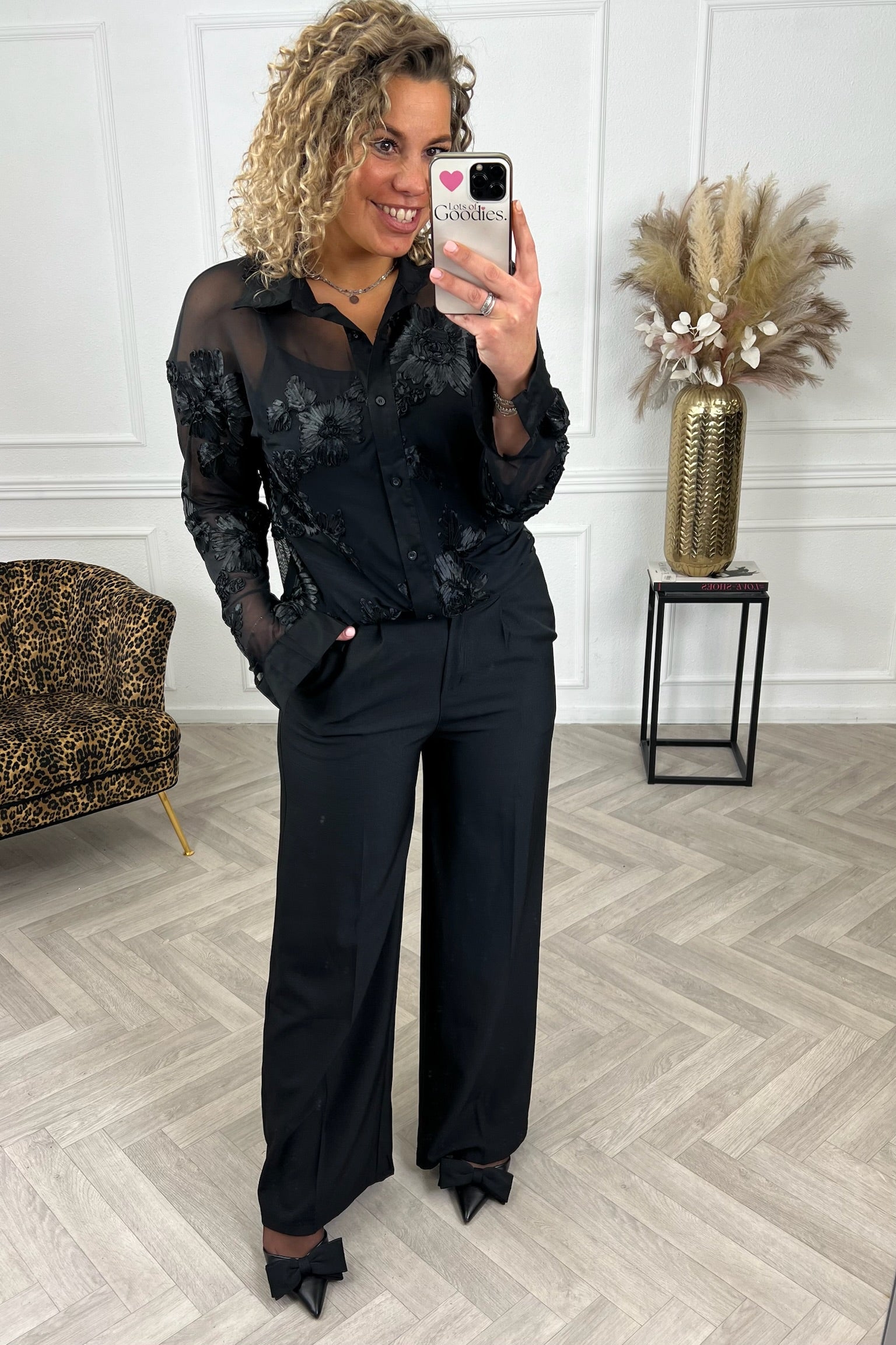 Een ontzettend chique blouse met 3D bloemen erop! De blouse bevat een prachtige kraag en manchetten. Shop de floral mesh blouse nu in black/black.