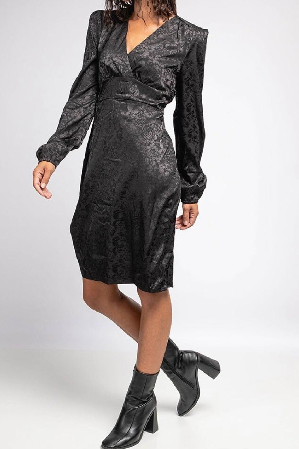 Flower Silk V Dress - Black
