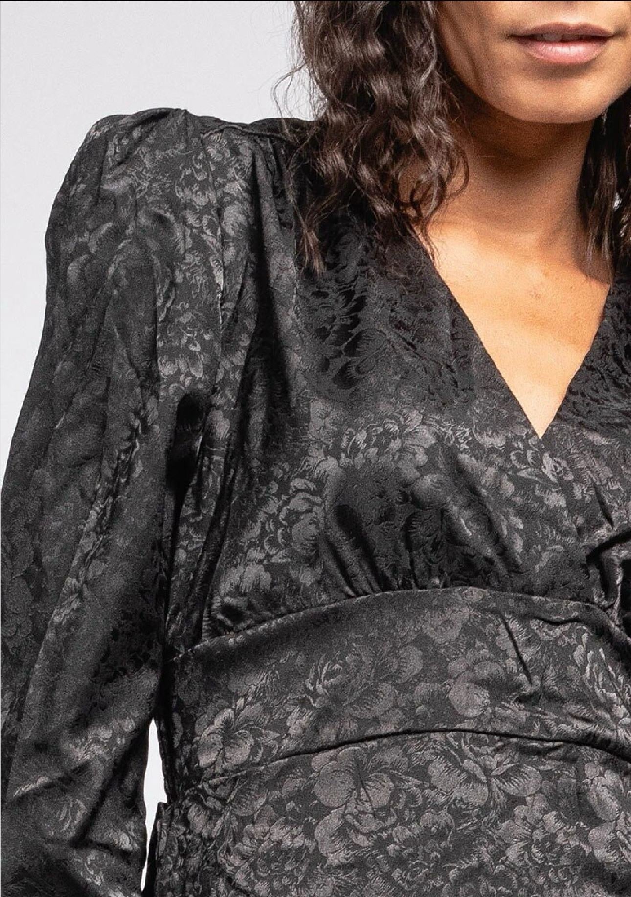 Een prachtige en elegante jurk met een v hals en een mooie bloemen print erop! Shop de flower silk v dress nu in black!