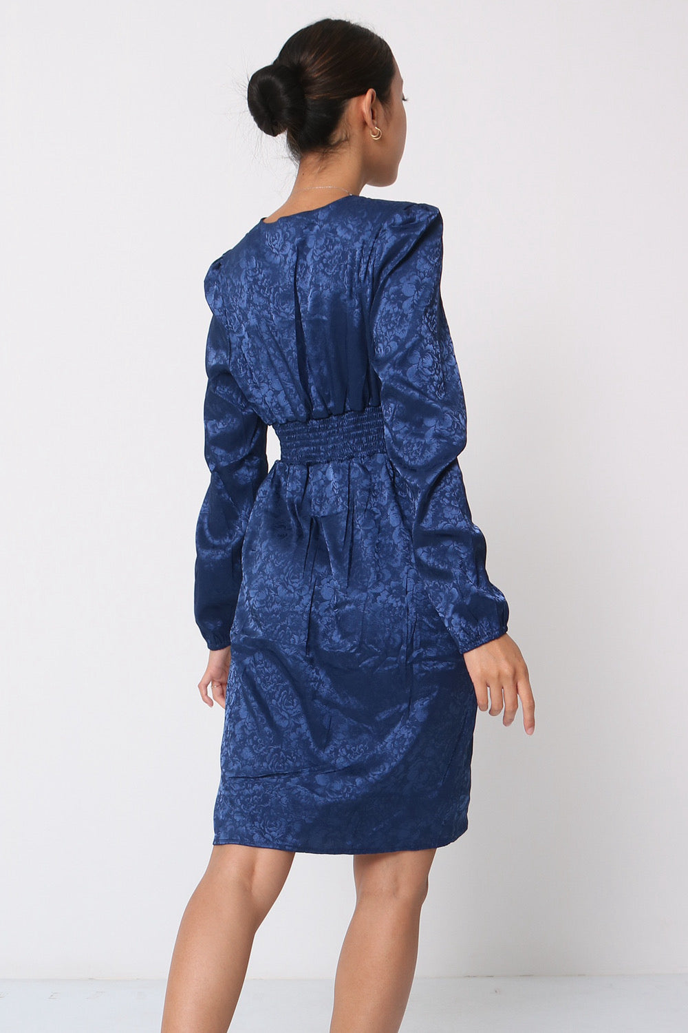 Een prachtige en elegante jurk met een v hals en een mooie bloemen print erop! Shop de flower silk v dress nu in navy!