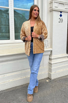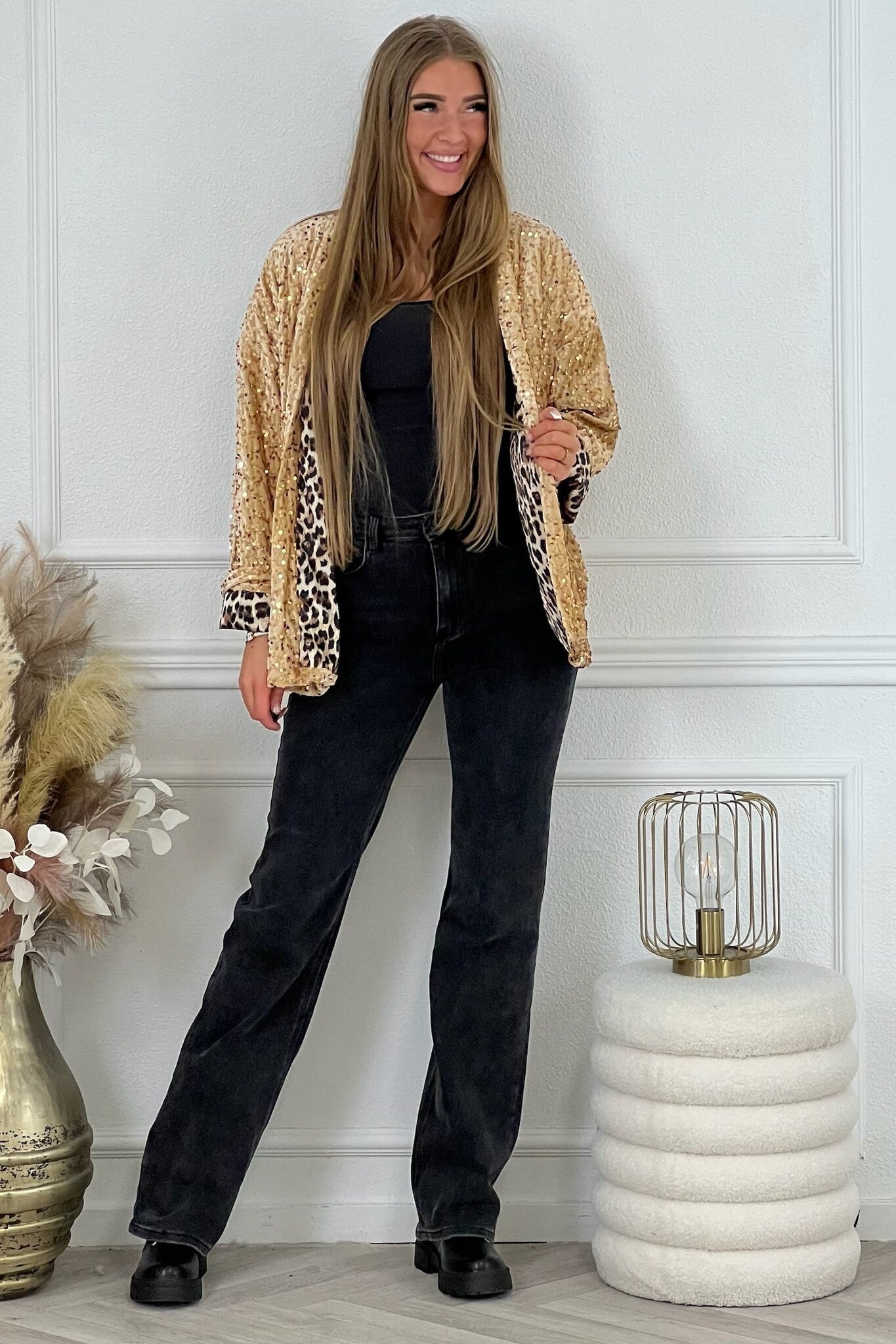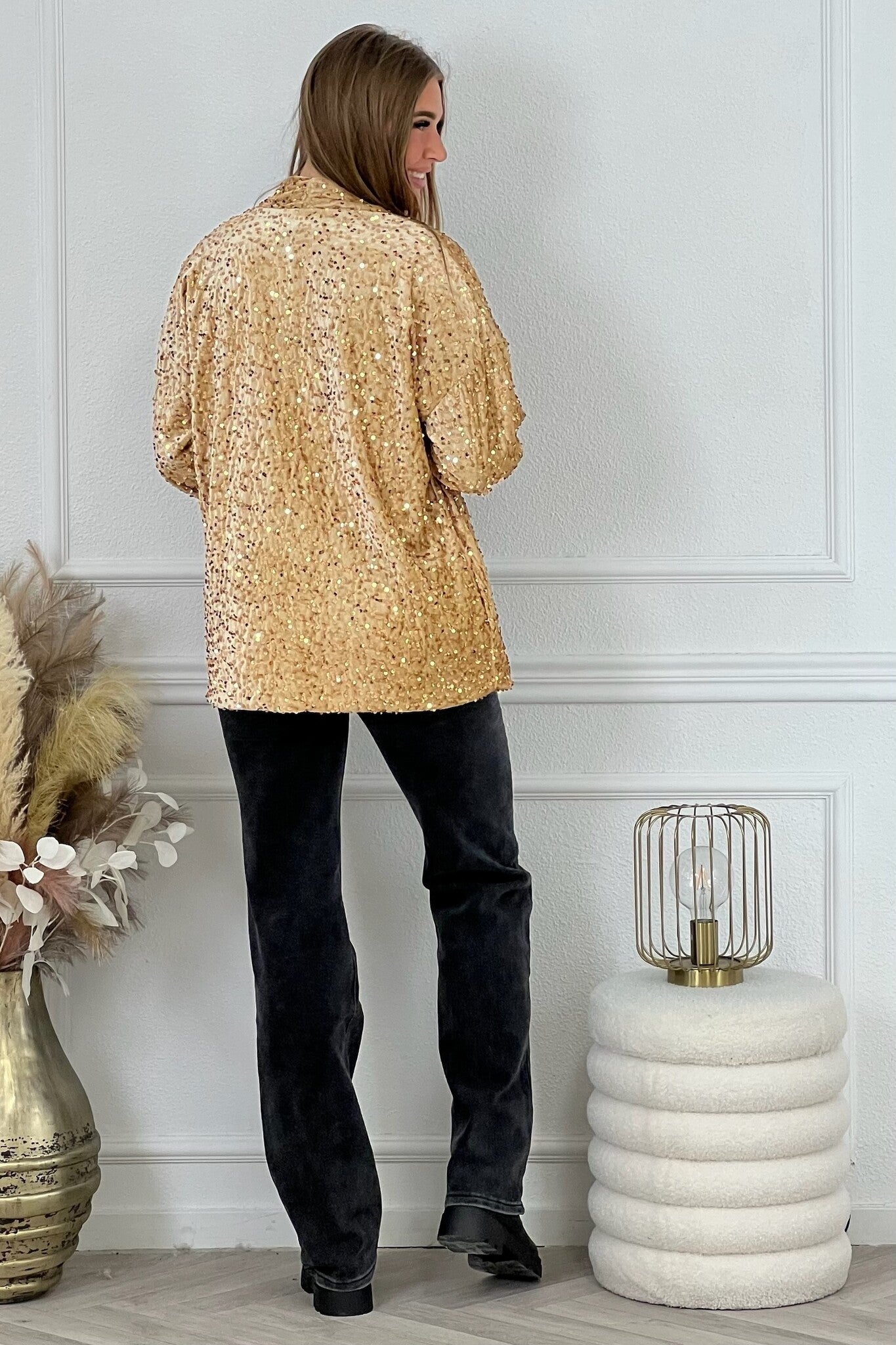 Deze leuke blazer is perfect voor dames die op zoek zijn naar een feestelijke en trendy look! Shop hem in gold.