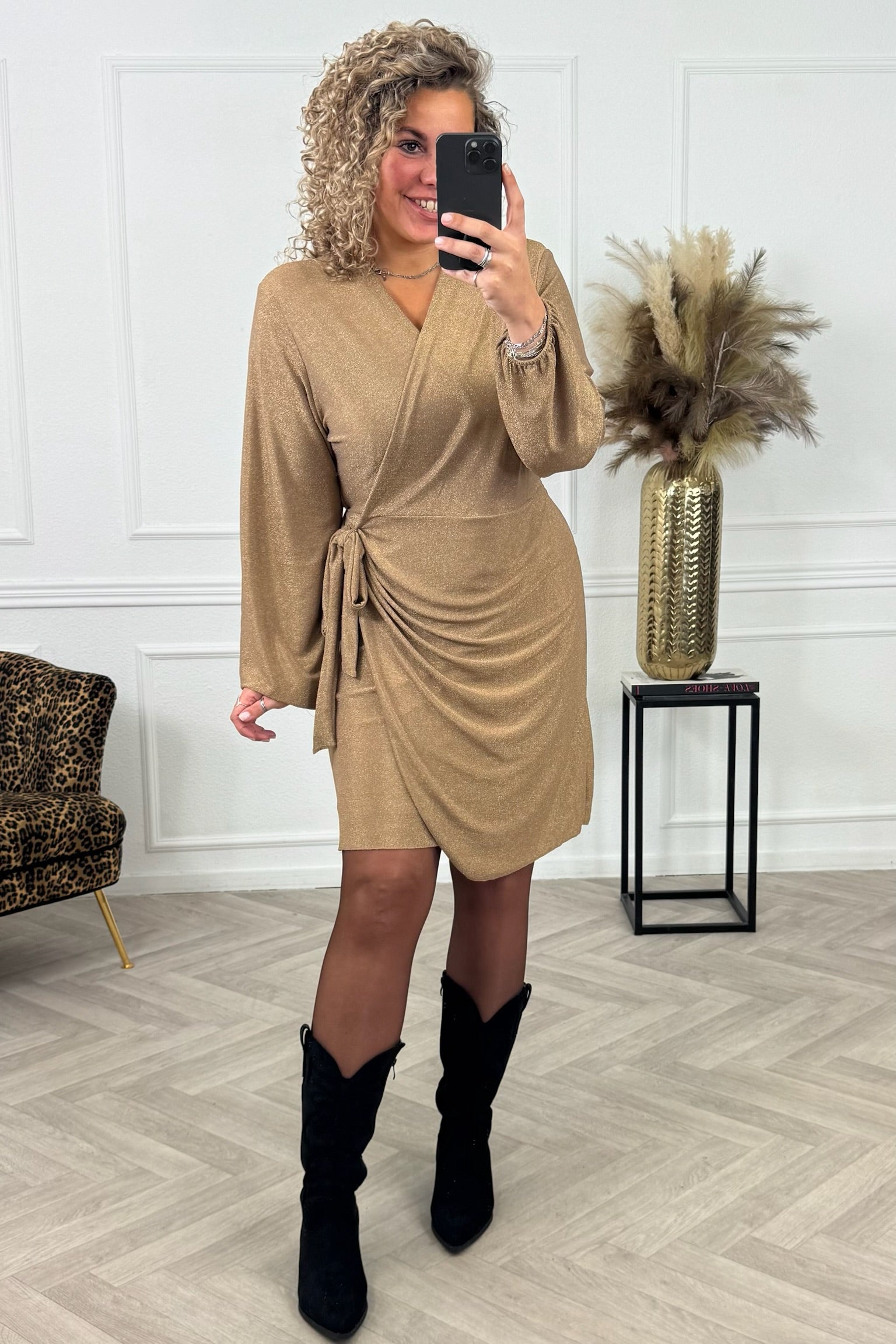 WAUW! wijn zijn helemaal in de glitter stemming! Jij ook? Koop dan snel deze glitter wrap dress in goud!