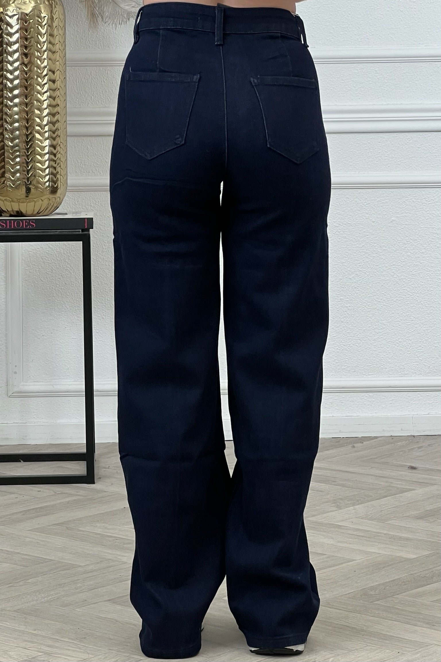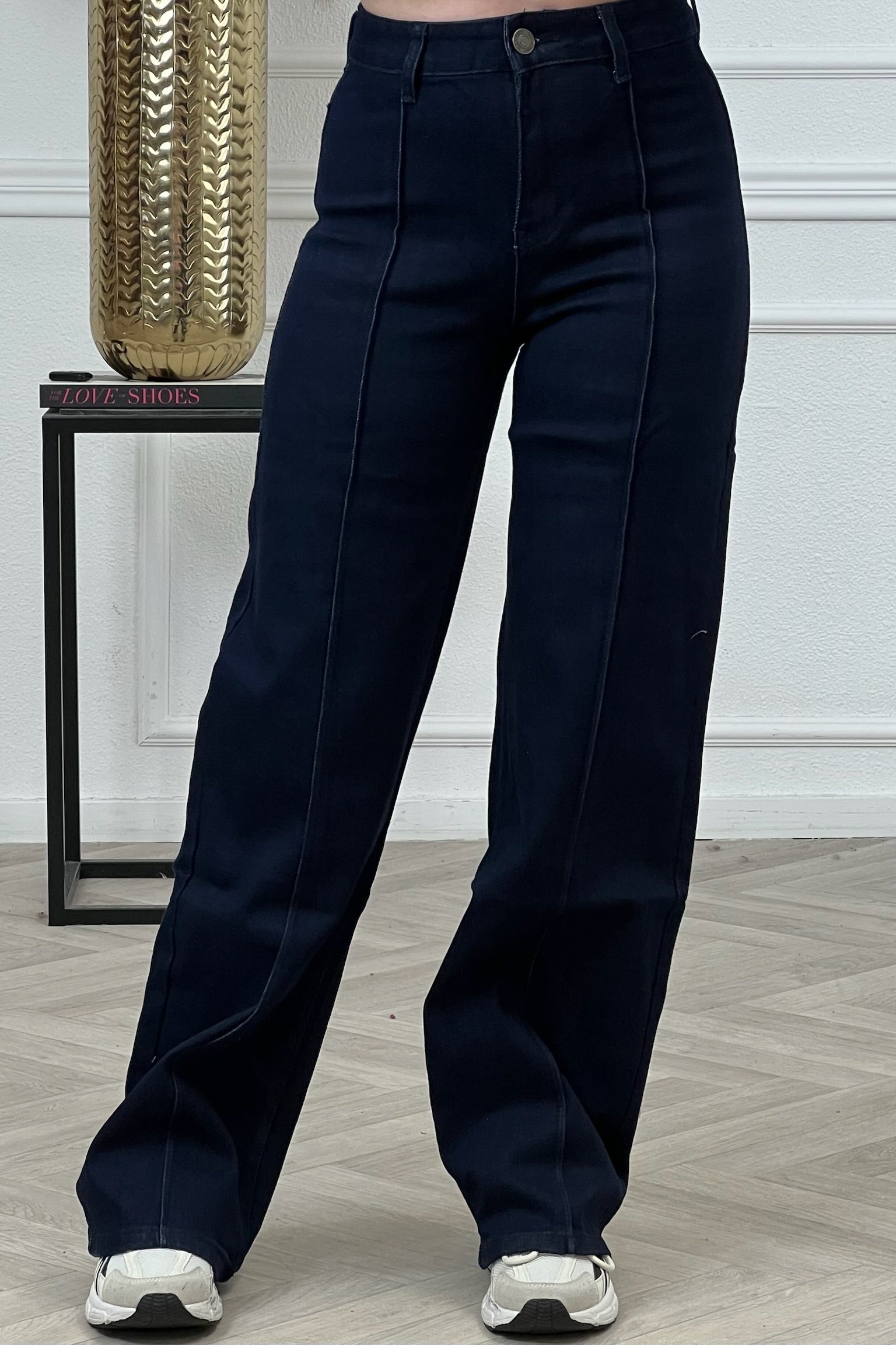 Deze prachtige wide leg heeft een mooie streep, voorop de broek! Shop deze wide leg nu in het dark blue! Van maat 36 tot en met 44!