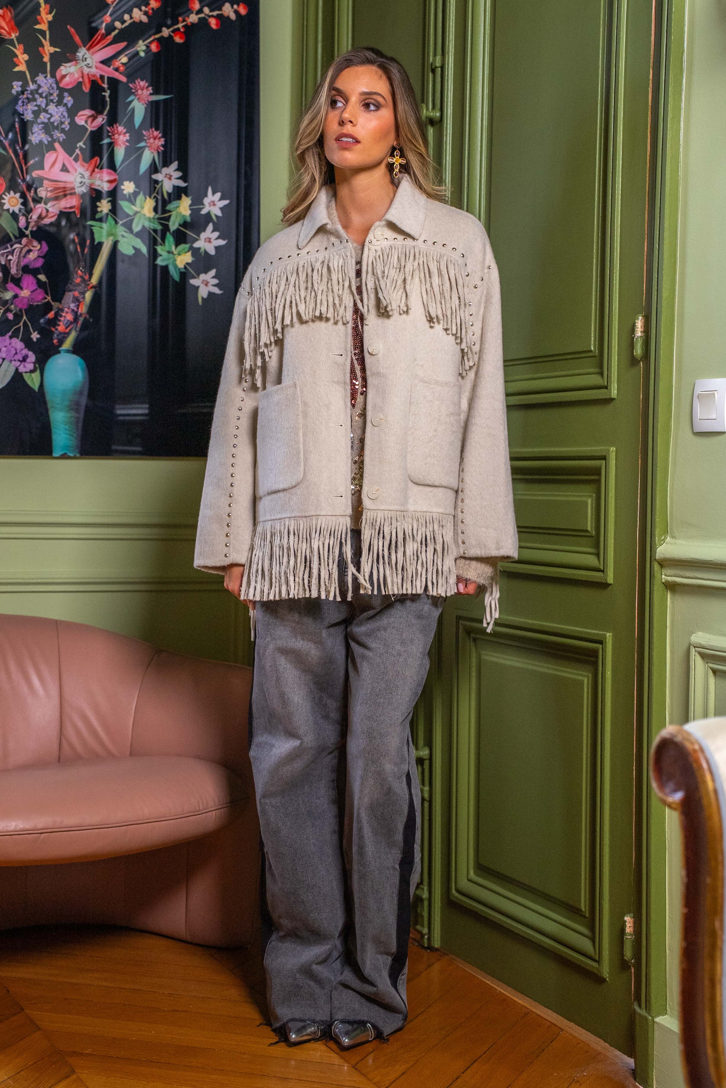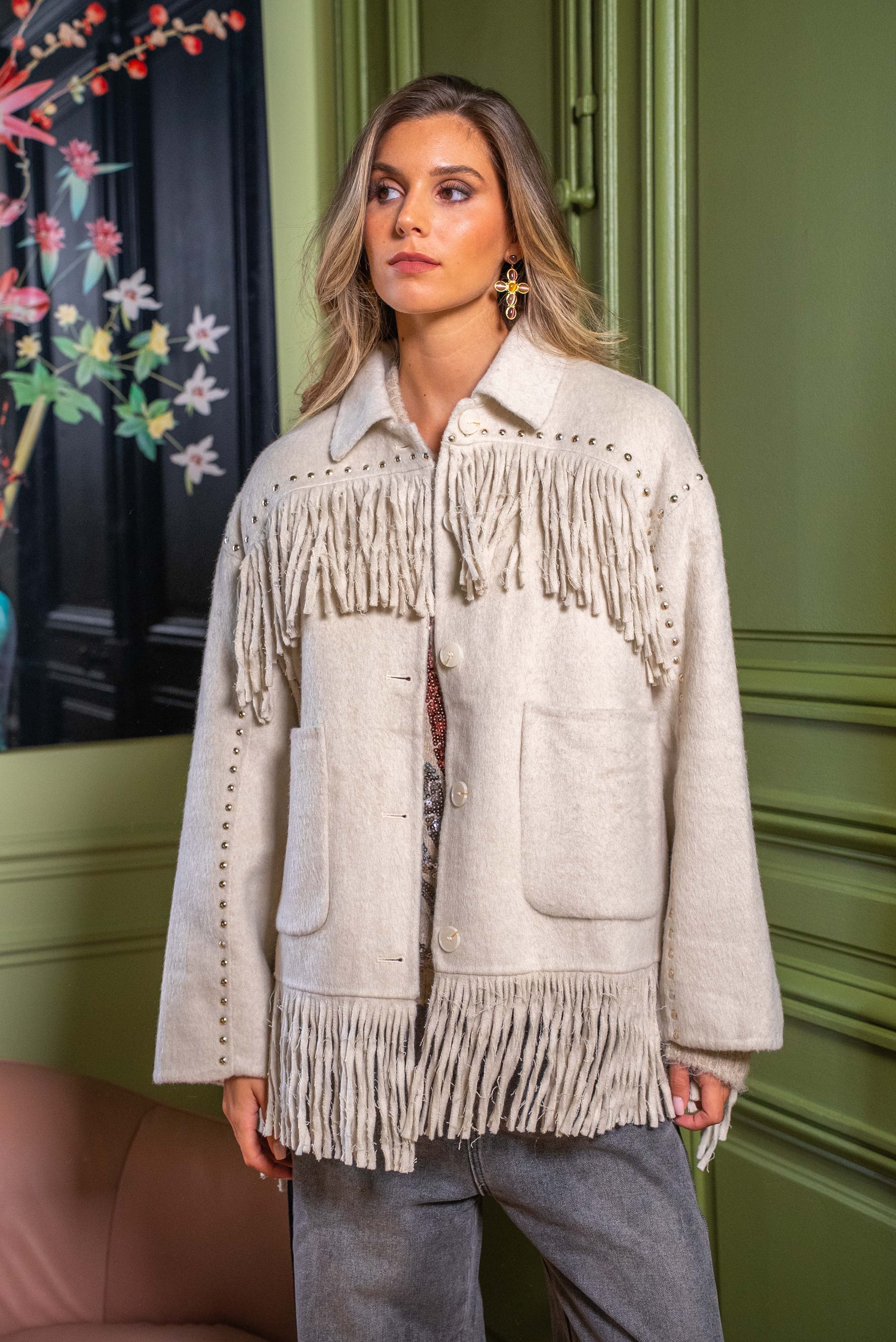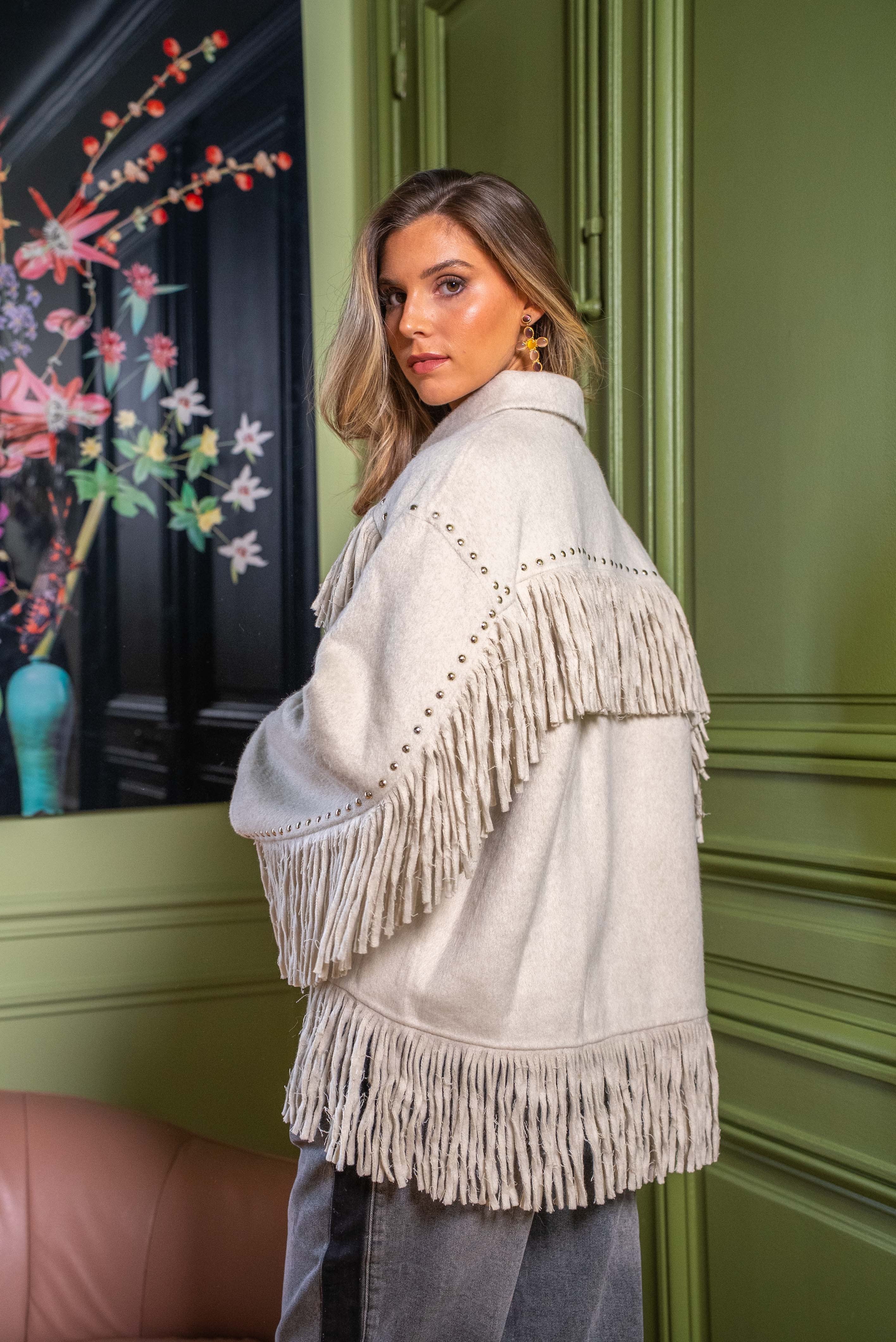 WAUW! Dit fantastische fringe jasje is handgemaakt! Shop de handmade fringe jacket nu snel in beige.