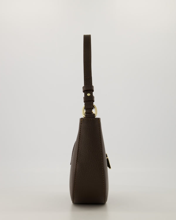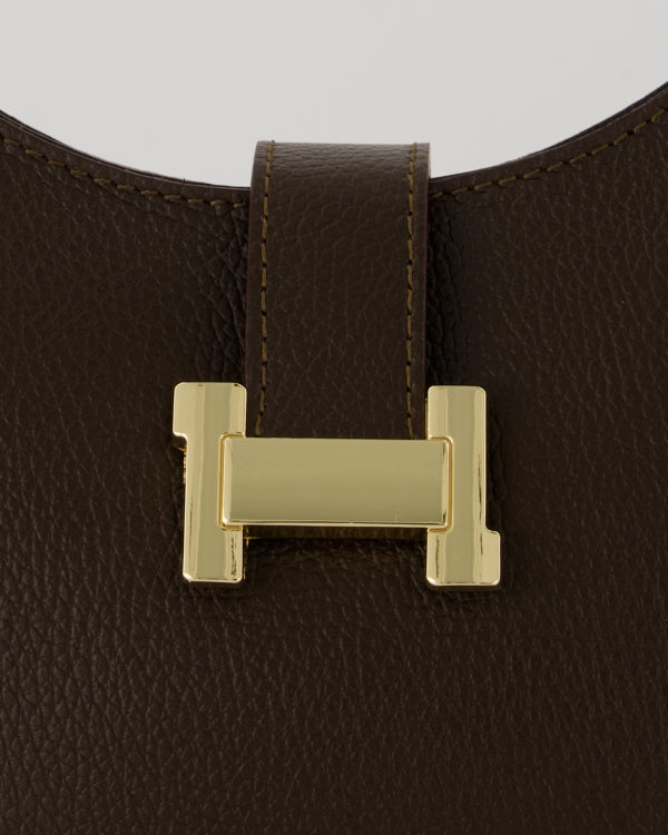De Inez schoudertas is een elegante tas van Brown generfd leer met goudkleurige details. Dankzij het verstelbare hengsel is de tas zowel als schoudertas en crossbody te dragen. De ritssluiting zit netjes verborgen onder een leren flap met stijlvolle gesp. Een tijdloos en praktisch ontwerp voor elke gelegenheid.