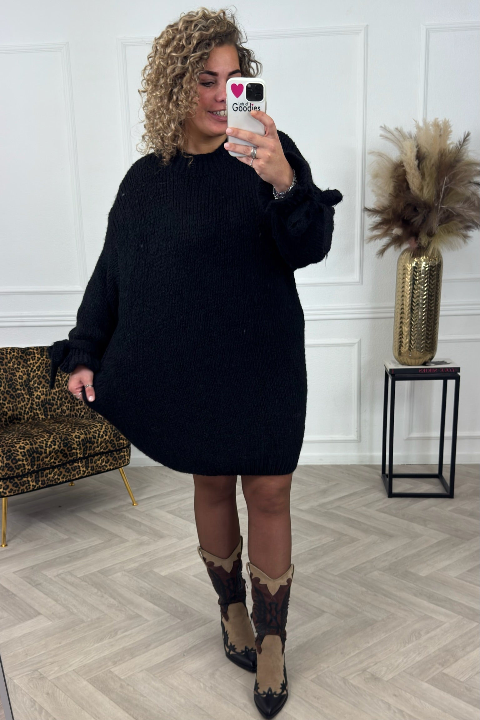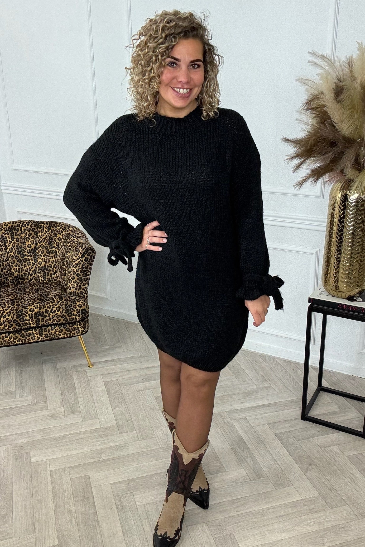 Hoe leuk zijn deze jurken? Heerlijk knitted en met een leuk strik detail op de mauwen! Shop nu snel in black!