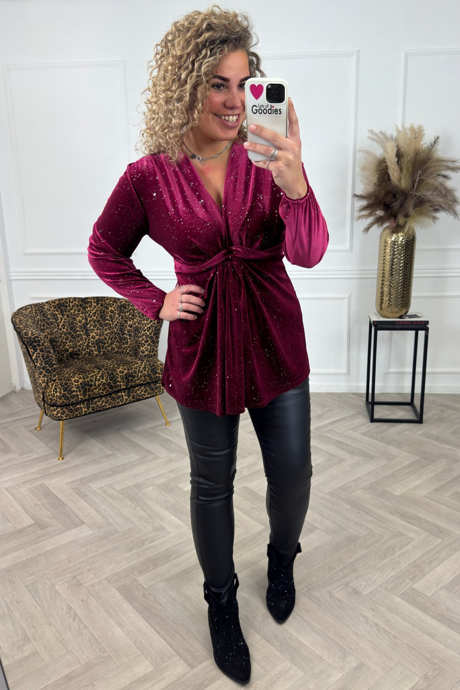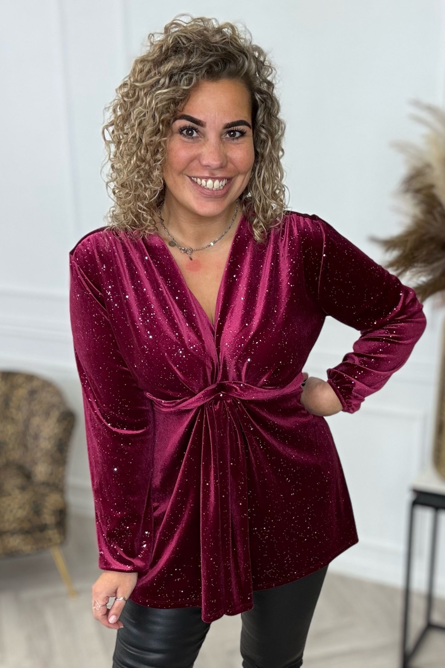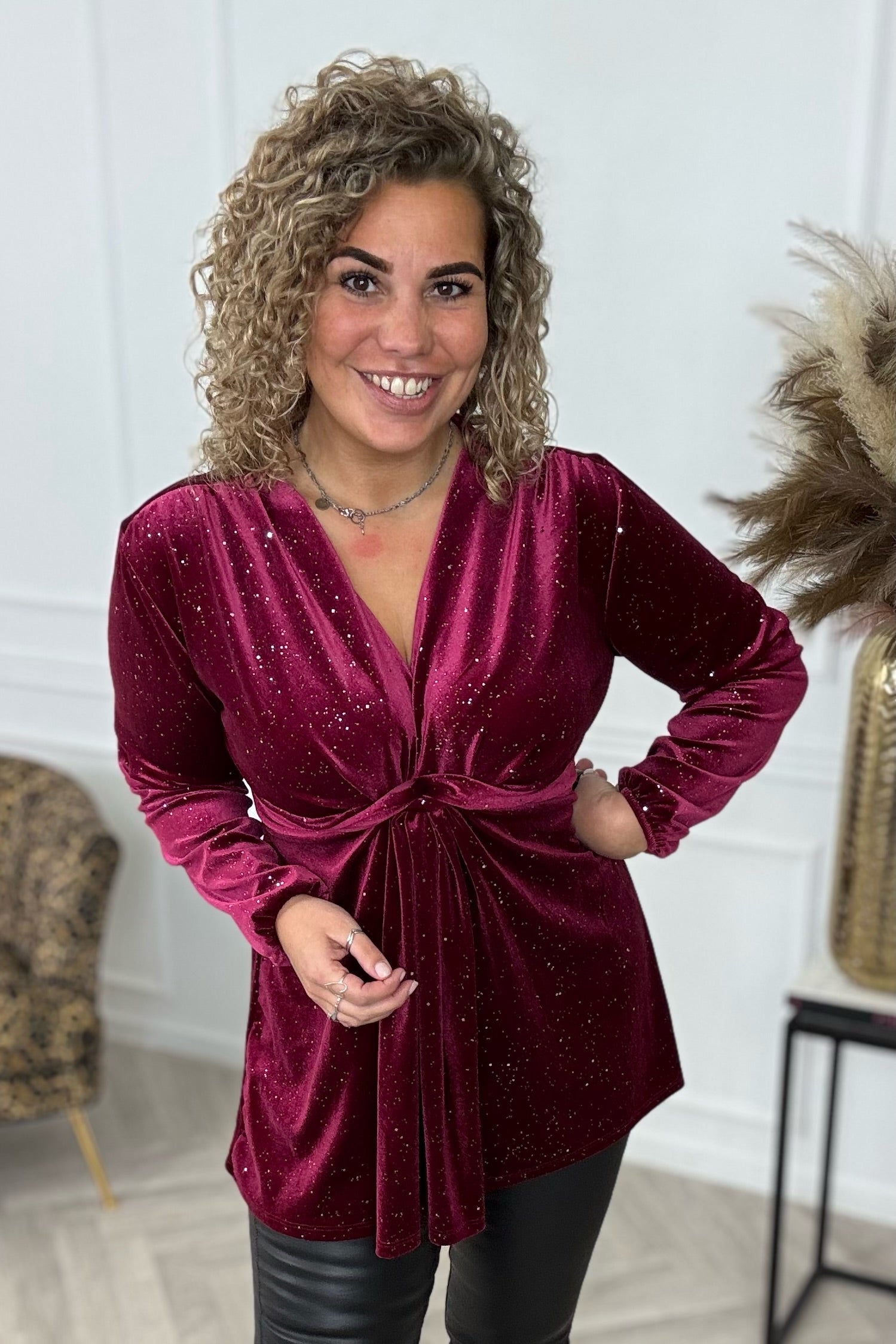 Een enige top, waarmee je zeker op een goede manier opvalt! Shop de knotted velvet sparkle nu in het bordeaux!