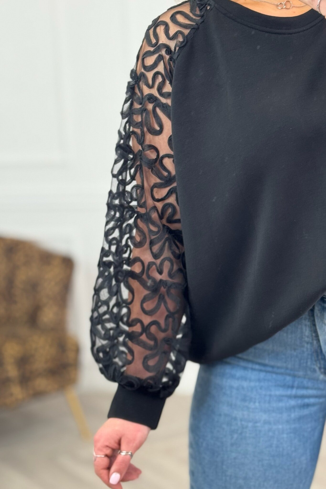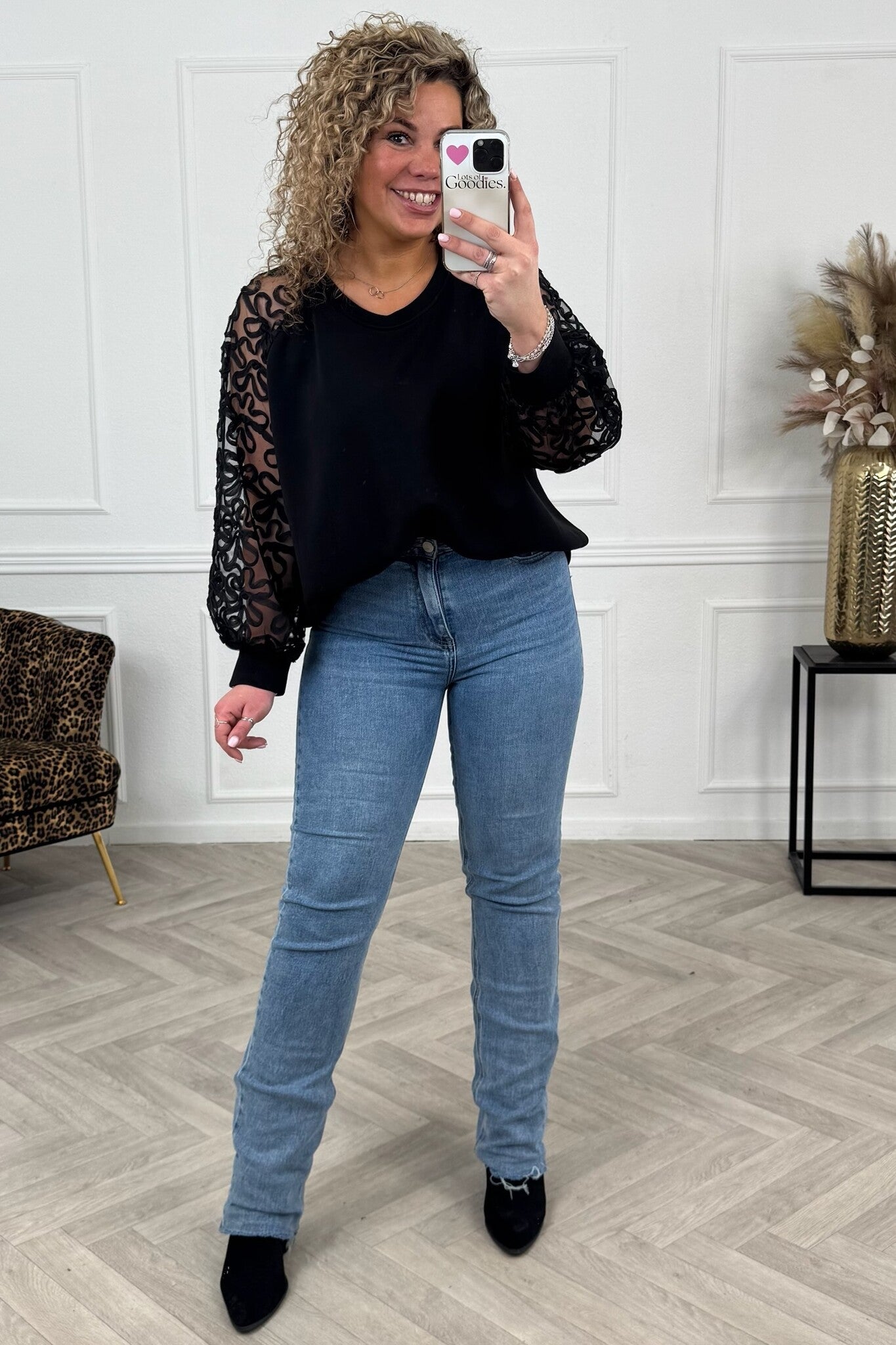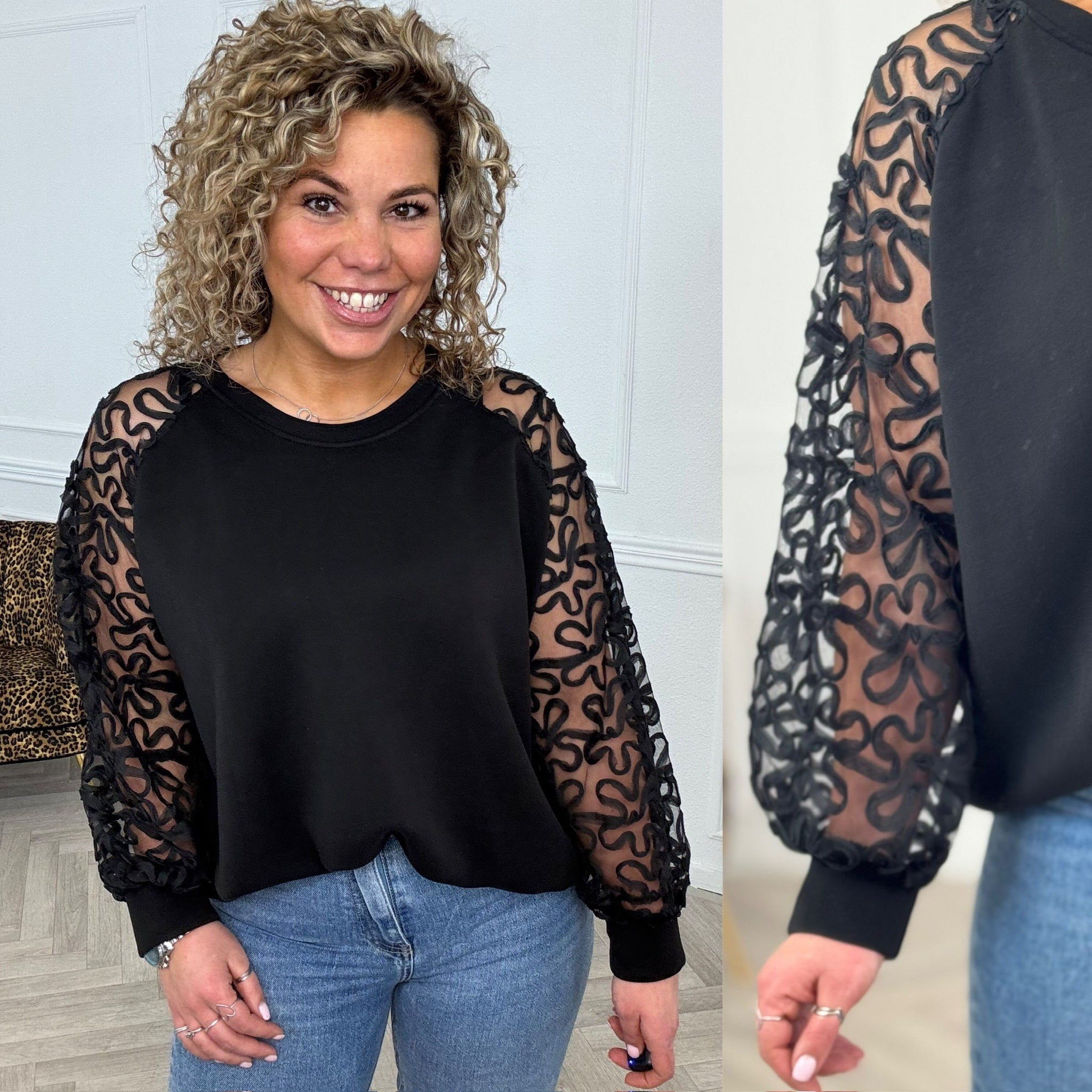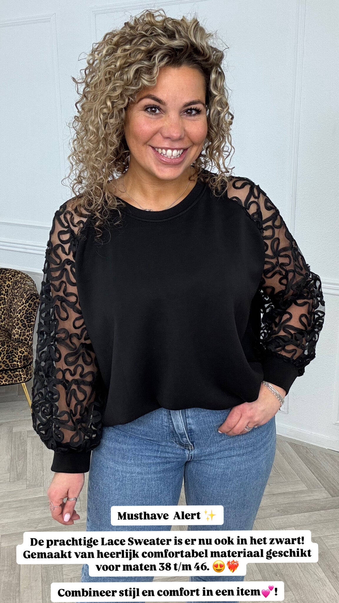 Deze heerlijk sweater met lace mouwen zit heerlijk en ziet er prachtig uit! Shop hem in blacke!