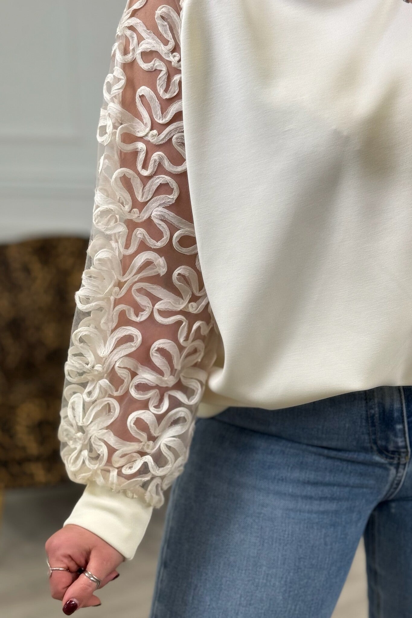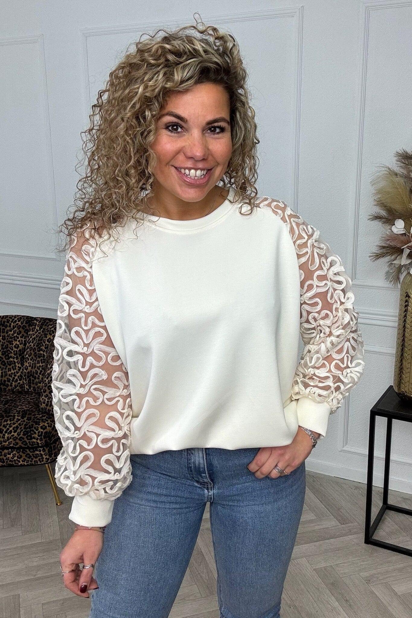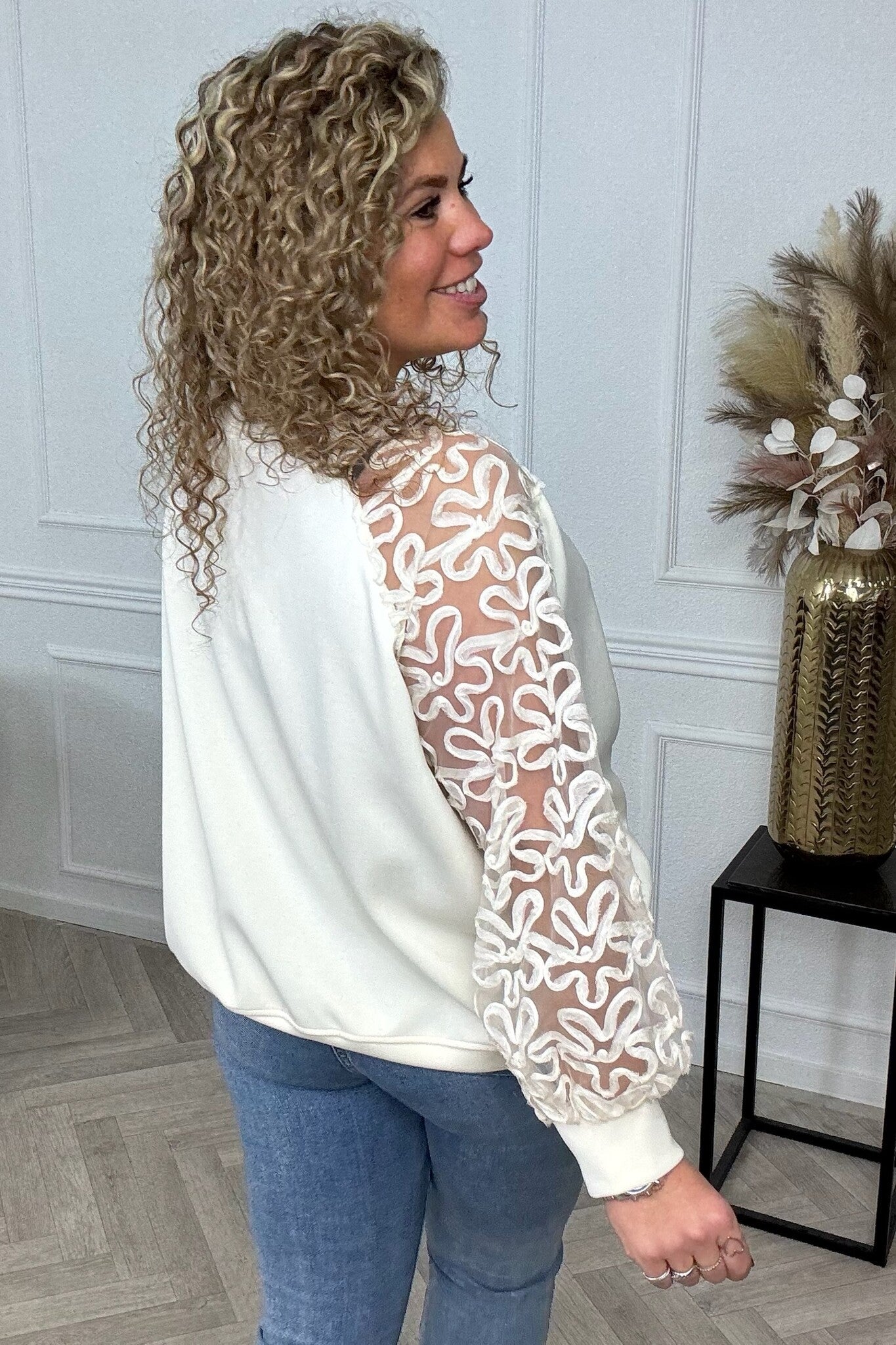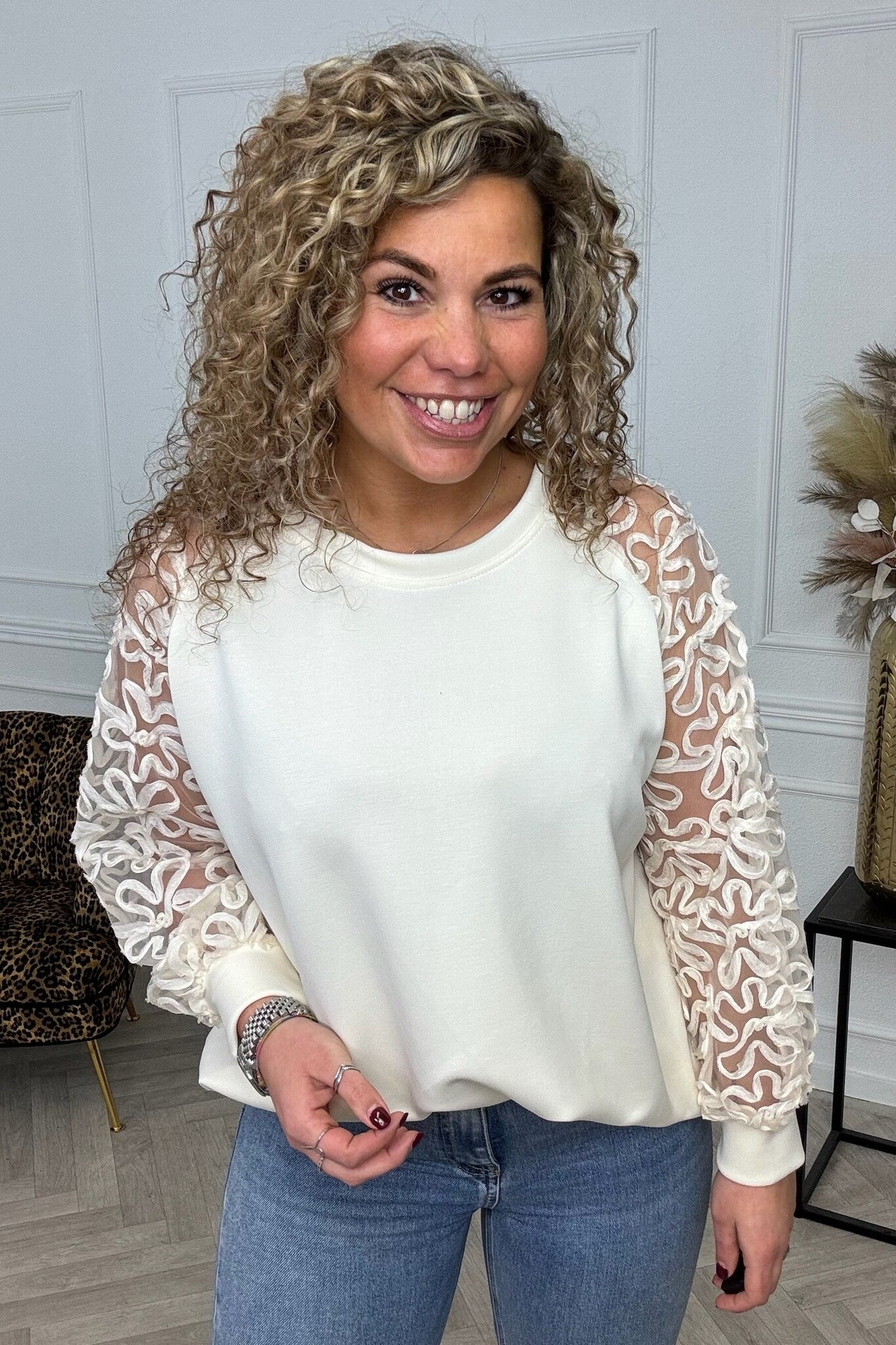 Deze heerlijk sweater met lace mouwen zit heerlijk en ziet er prachtig uit! Shop hem in creme!