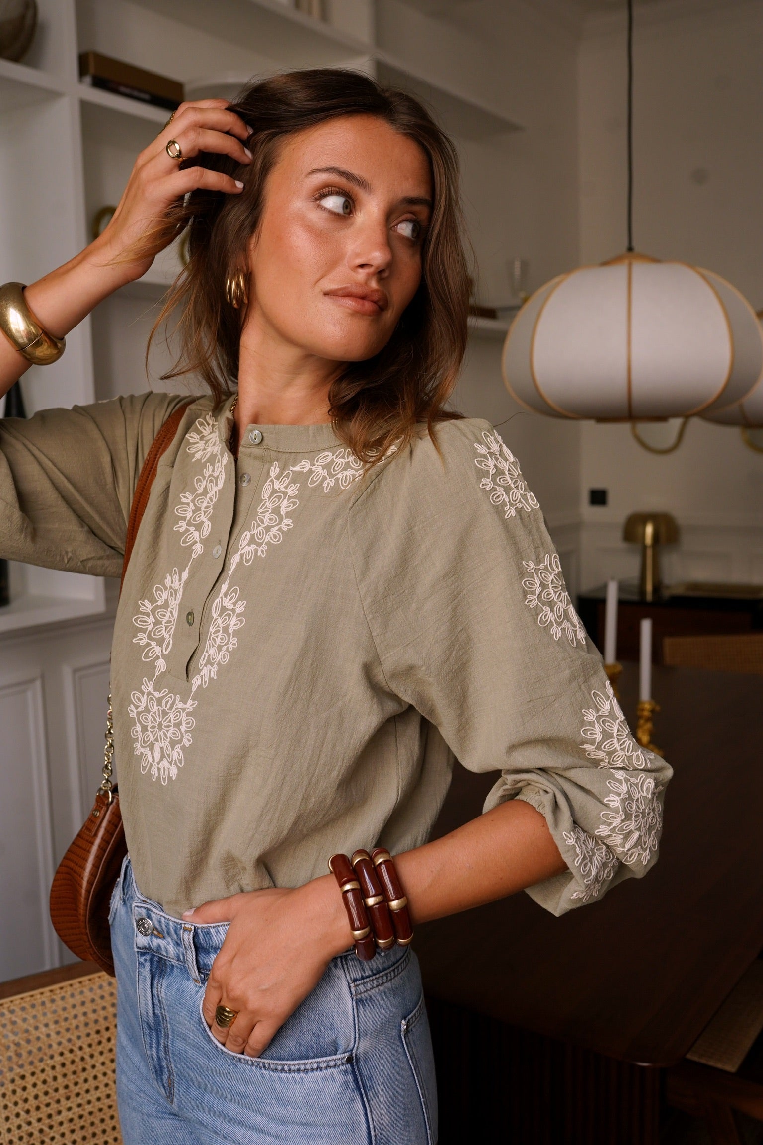 Een hele mooie blouse, wat echt een must in je kledingkast is! Deze blouse kan je overal bij dragen! Shop de léa broderie blouse nu in green!