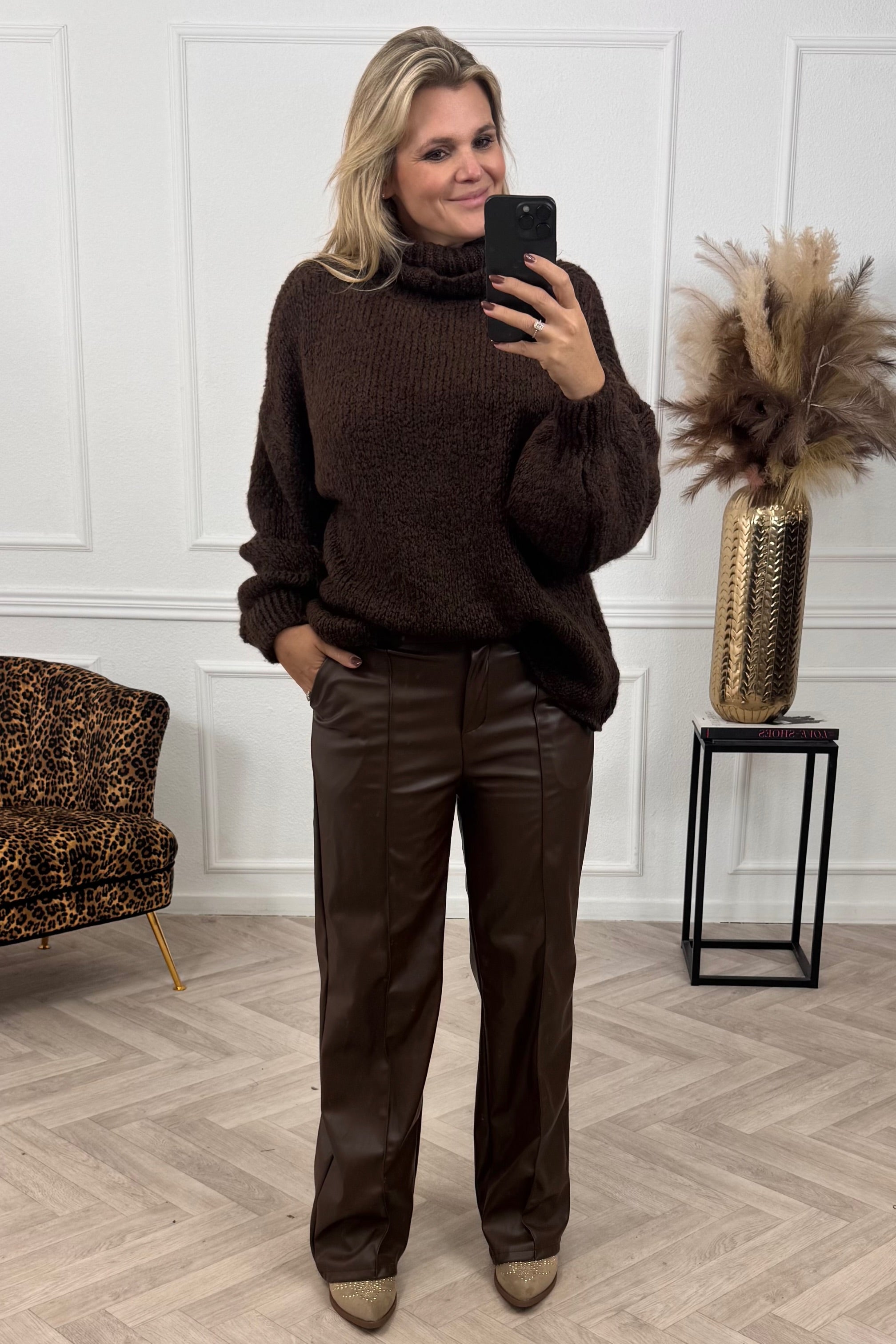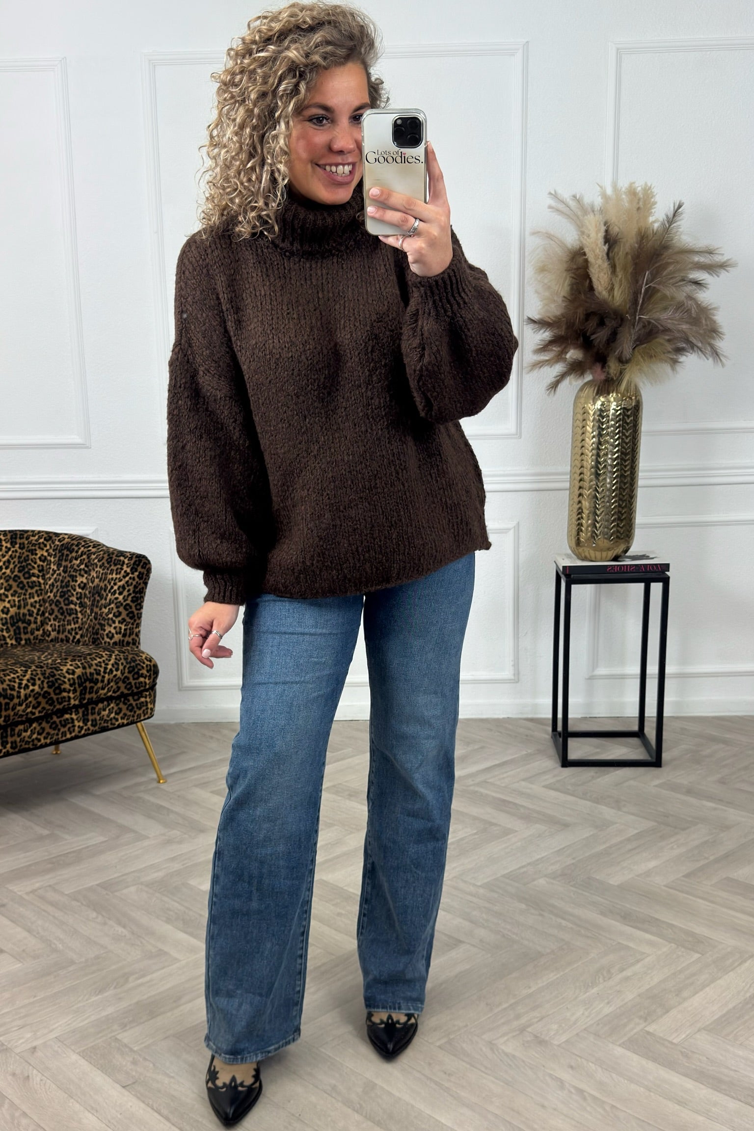 Deze heerlijke sweater kriebelt niet en heeft wel een fijne hoge coll! Shop deze warme trui nu snel in het brown!