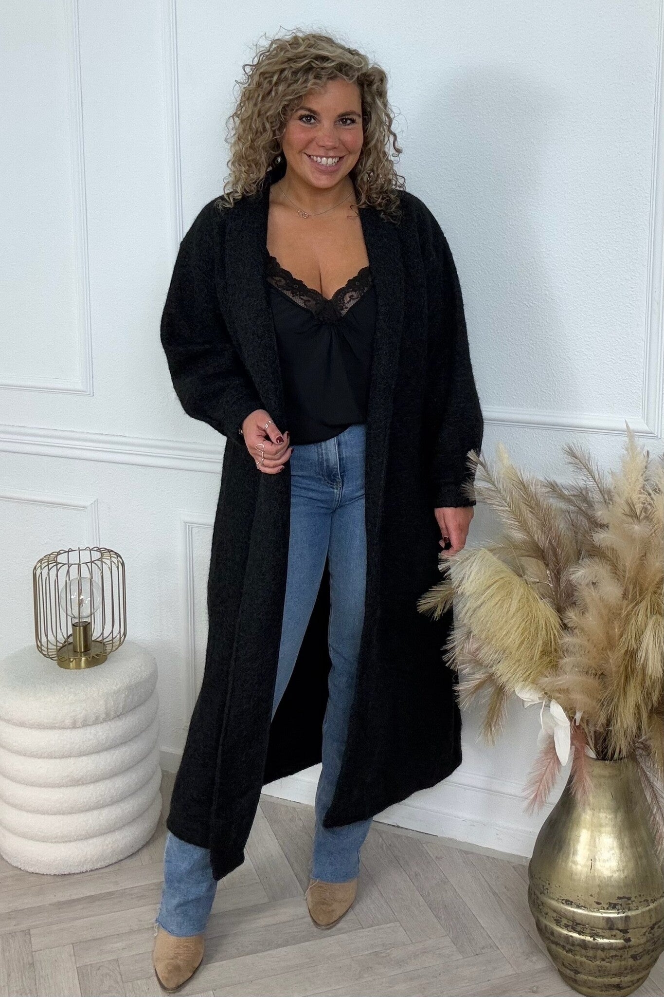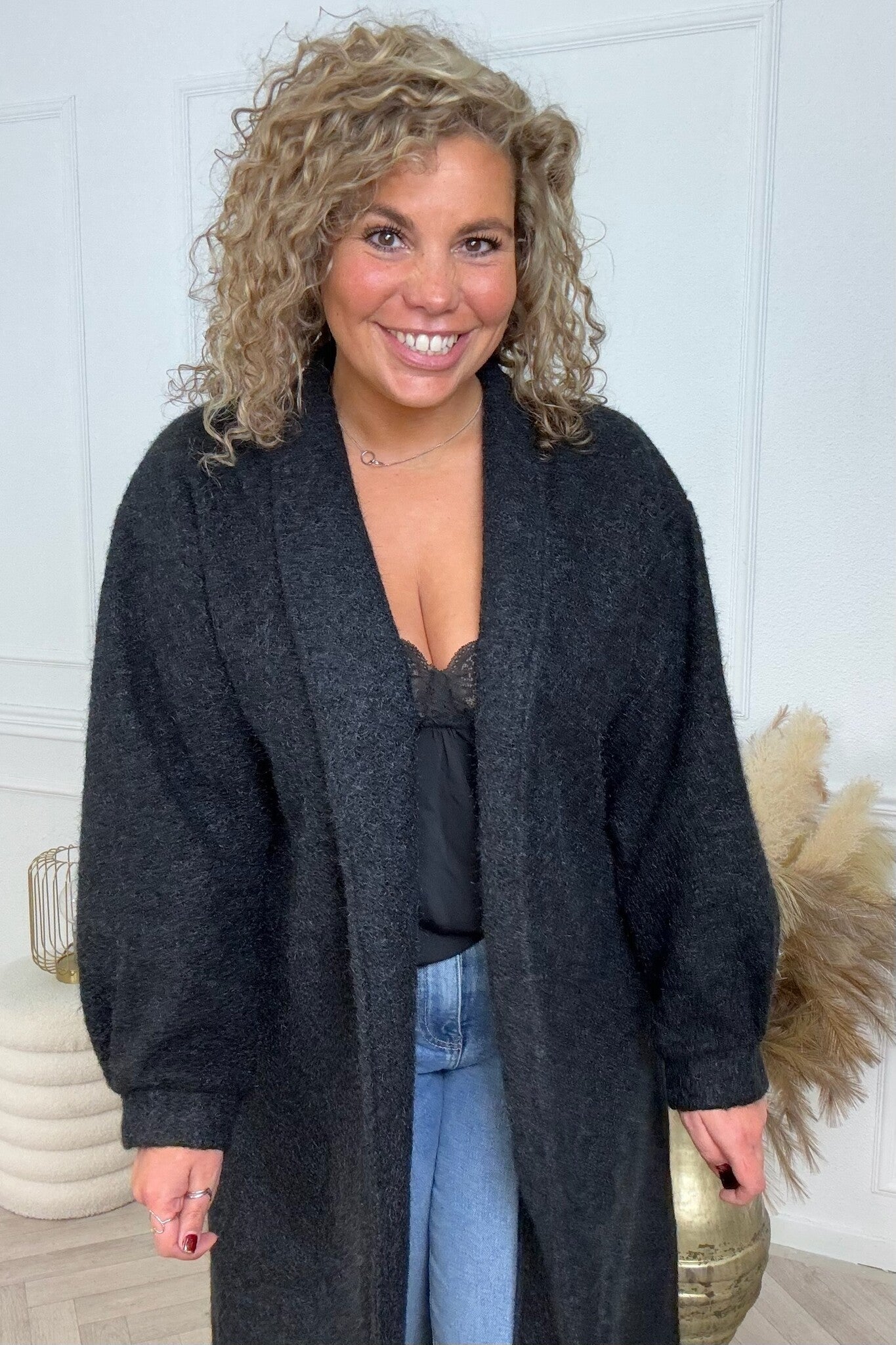 Dit heerlijke lange vest is super warm en cozy, perfect voor de koude dagen! Shop hem nu in black.