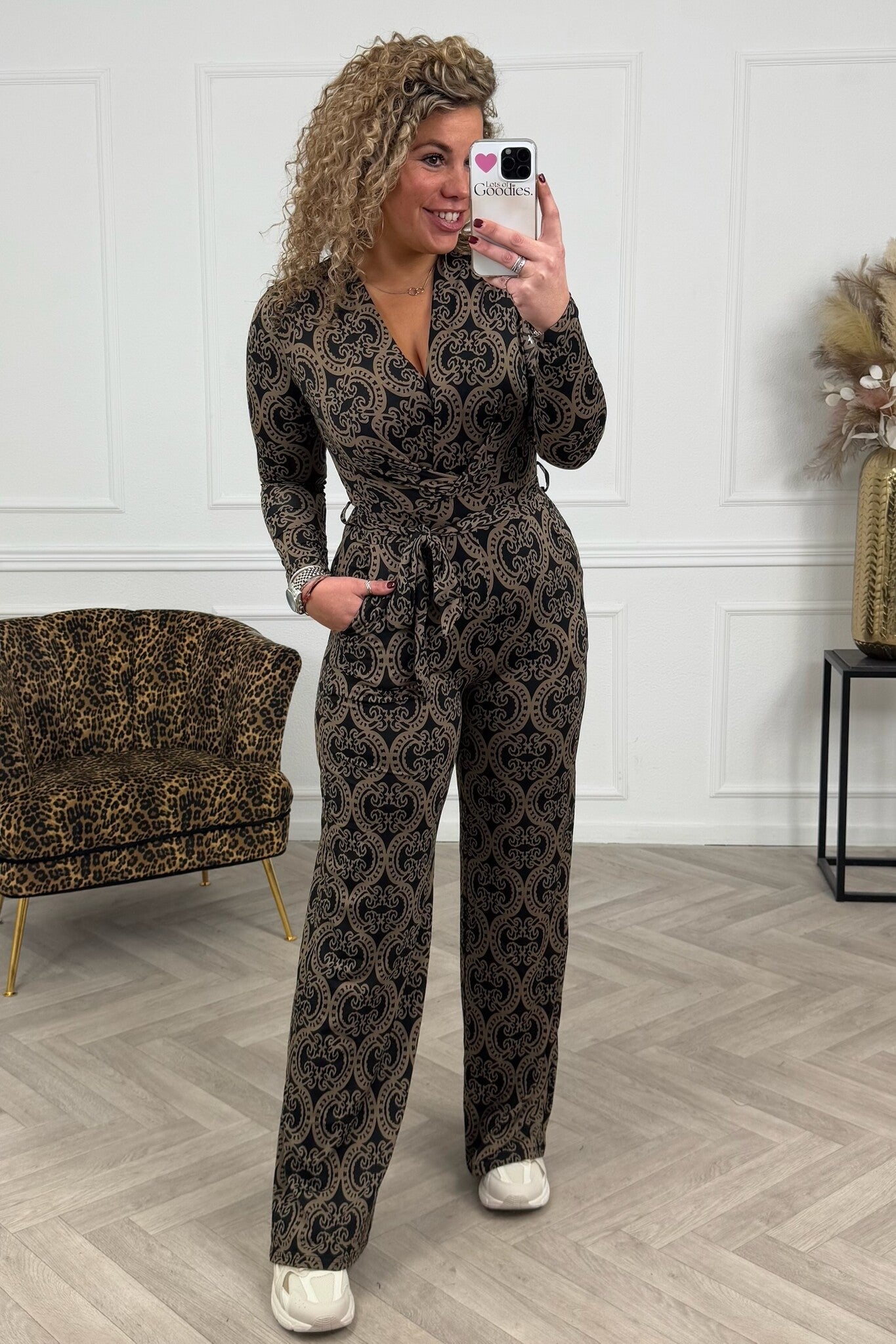 Een mooie jumpsuit met lange mouwen! Verkrijgbaar in verschillende kleuren en printjes!
