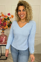 Long Sleeve Macy V Sweater - Light Blue