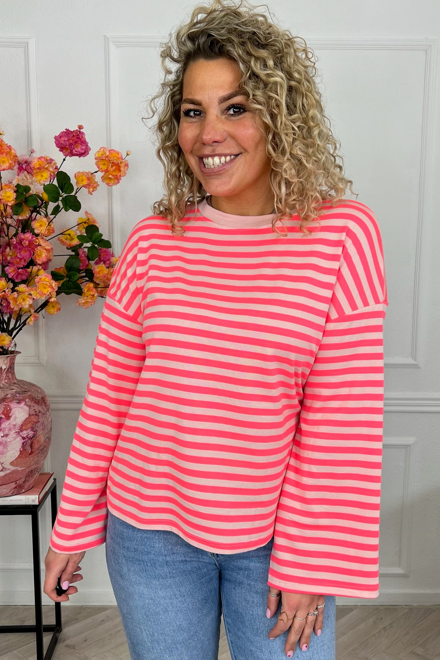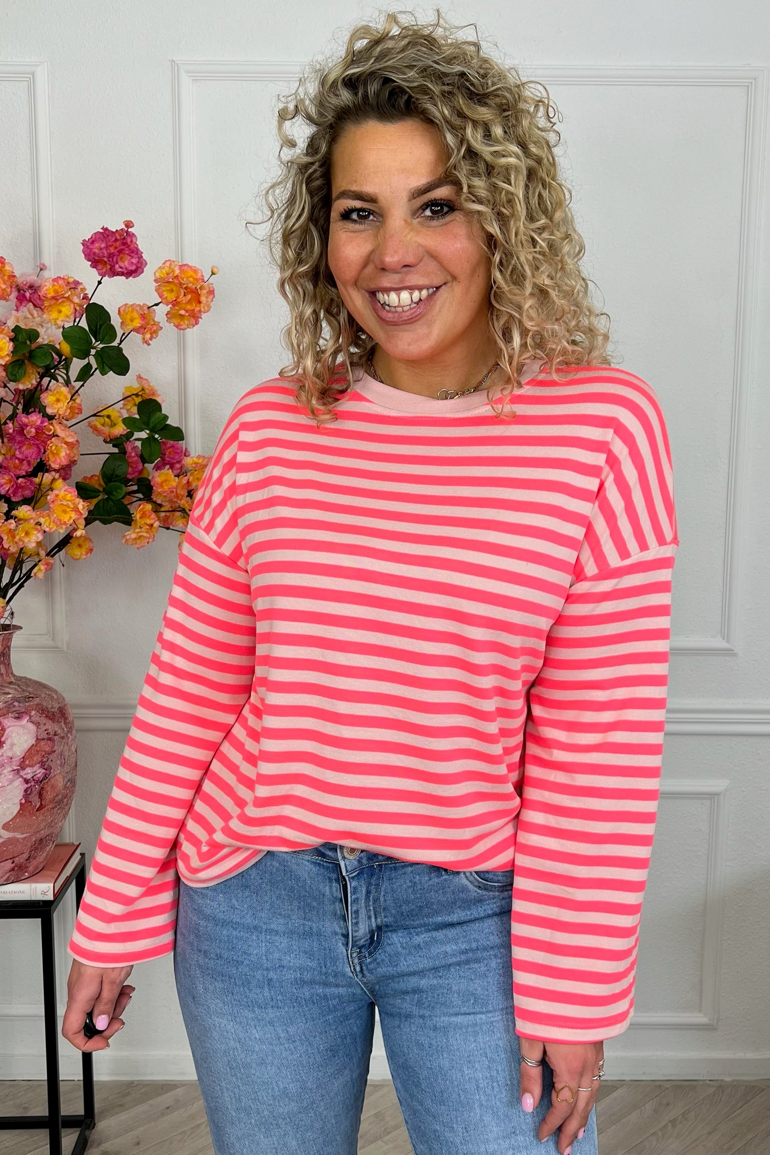 Dit mega leuke t-shirt heeft een mooi gestreept patroon en is verkrijgbaar in meerdere kleuren combinaties, we love it! Shop hem nu in Fuchsia/Light Pink!