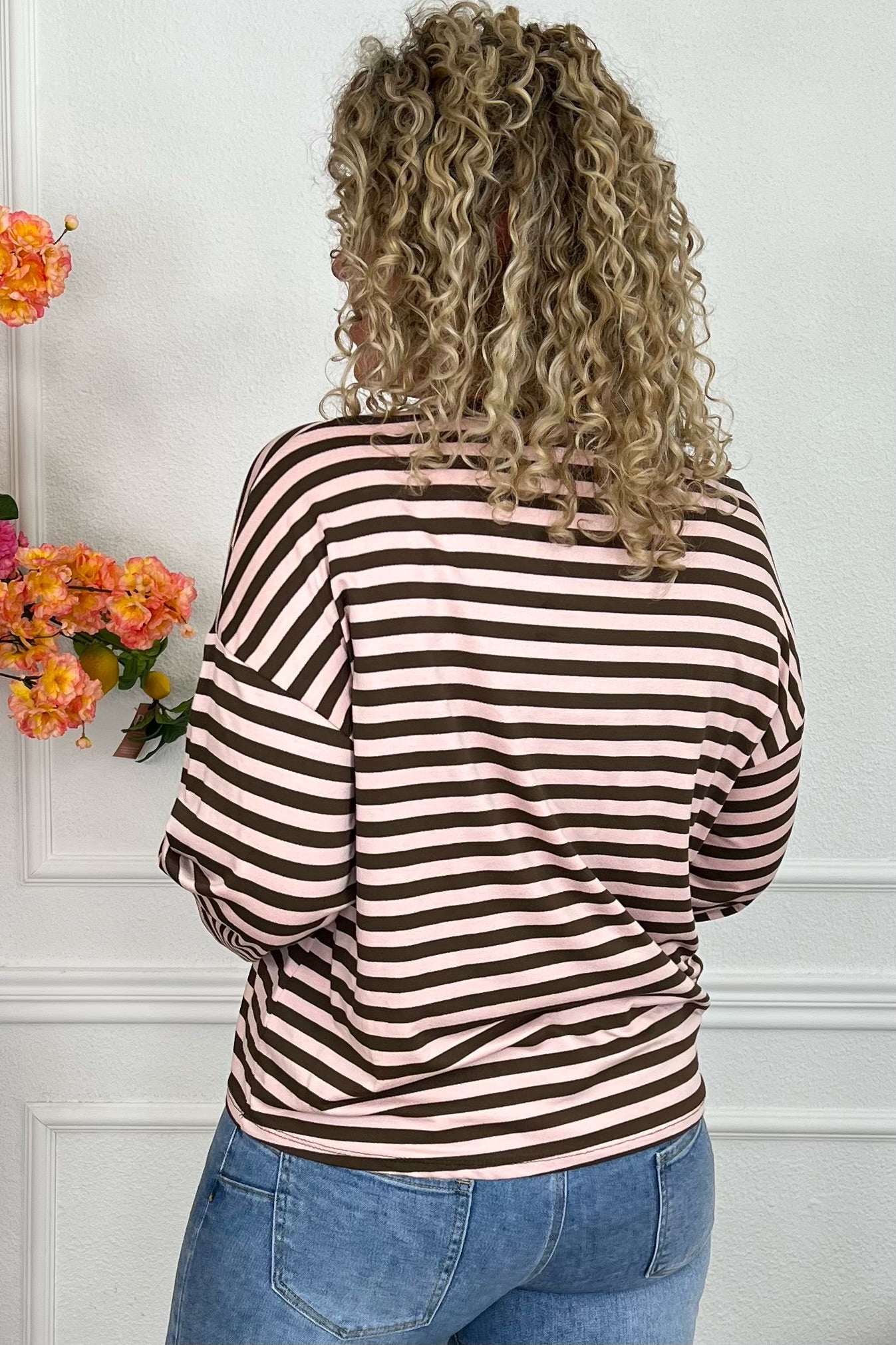 Long Sleeve Striped Shirt - Pink/Brown