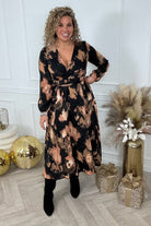 Deze superleuke jurk heeft een mooie fire print en een strik rond de taille, we love it! Shop hem nu in de lange variant in black/rusty.