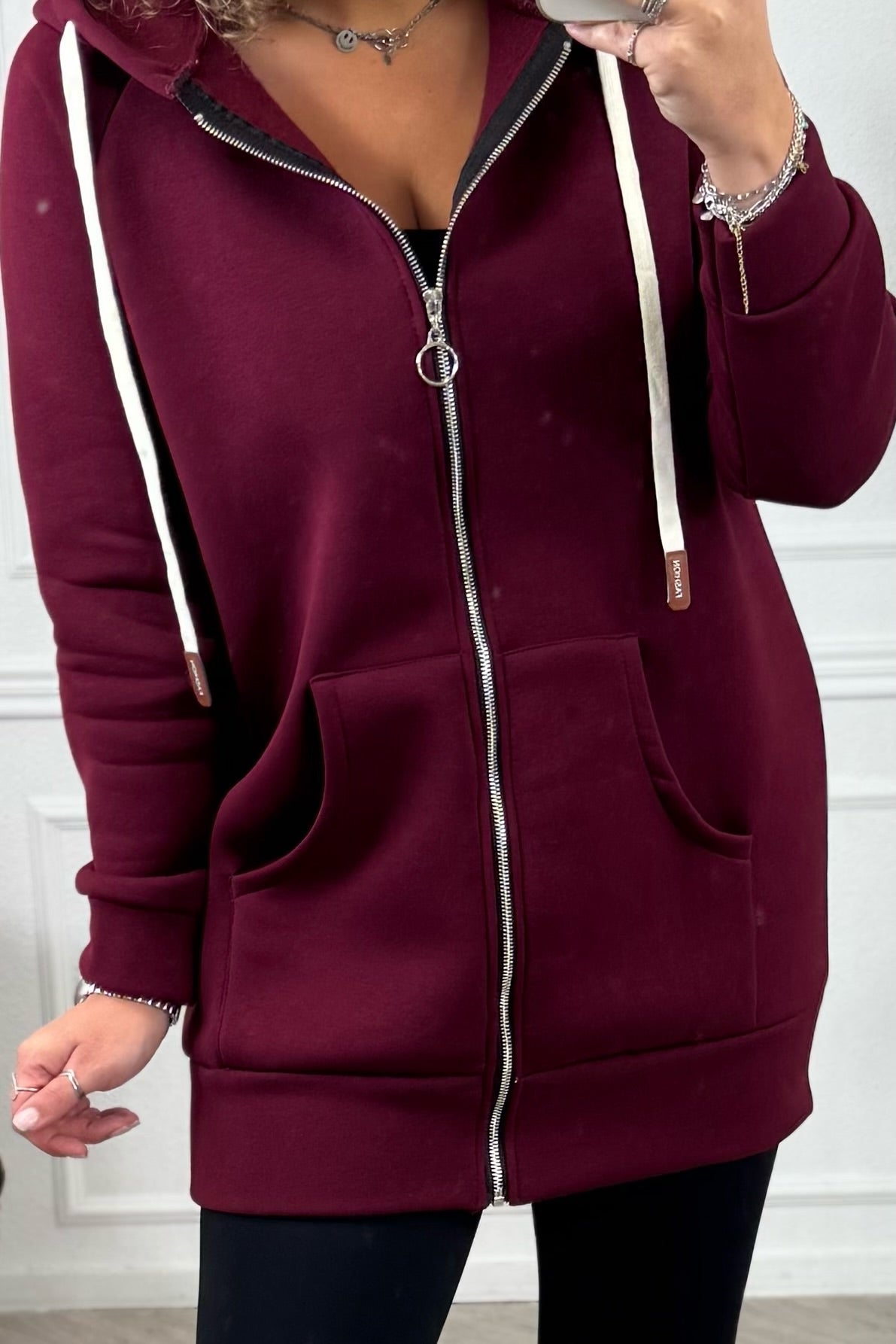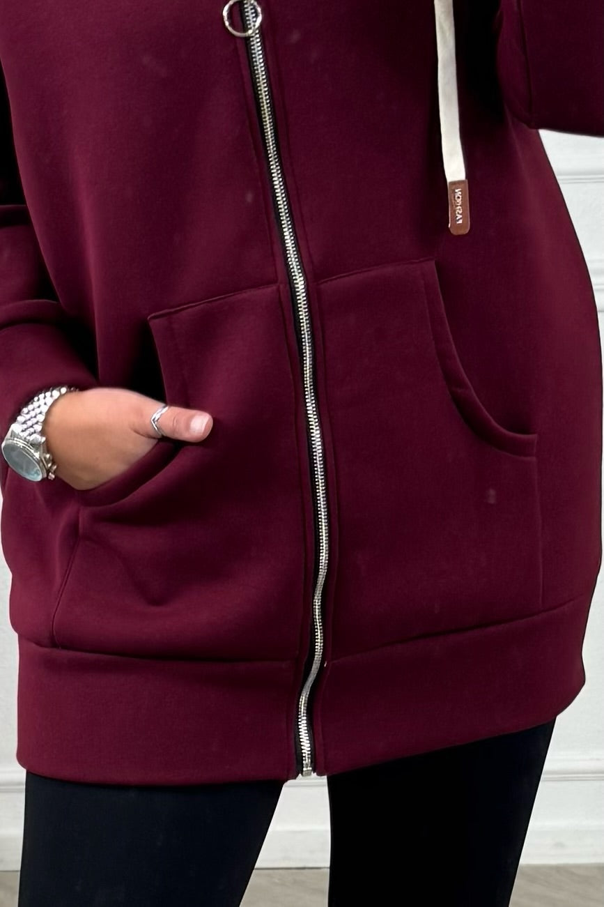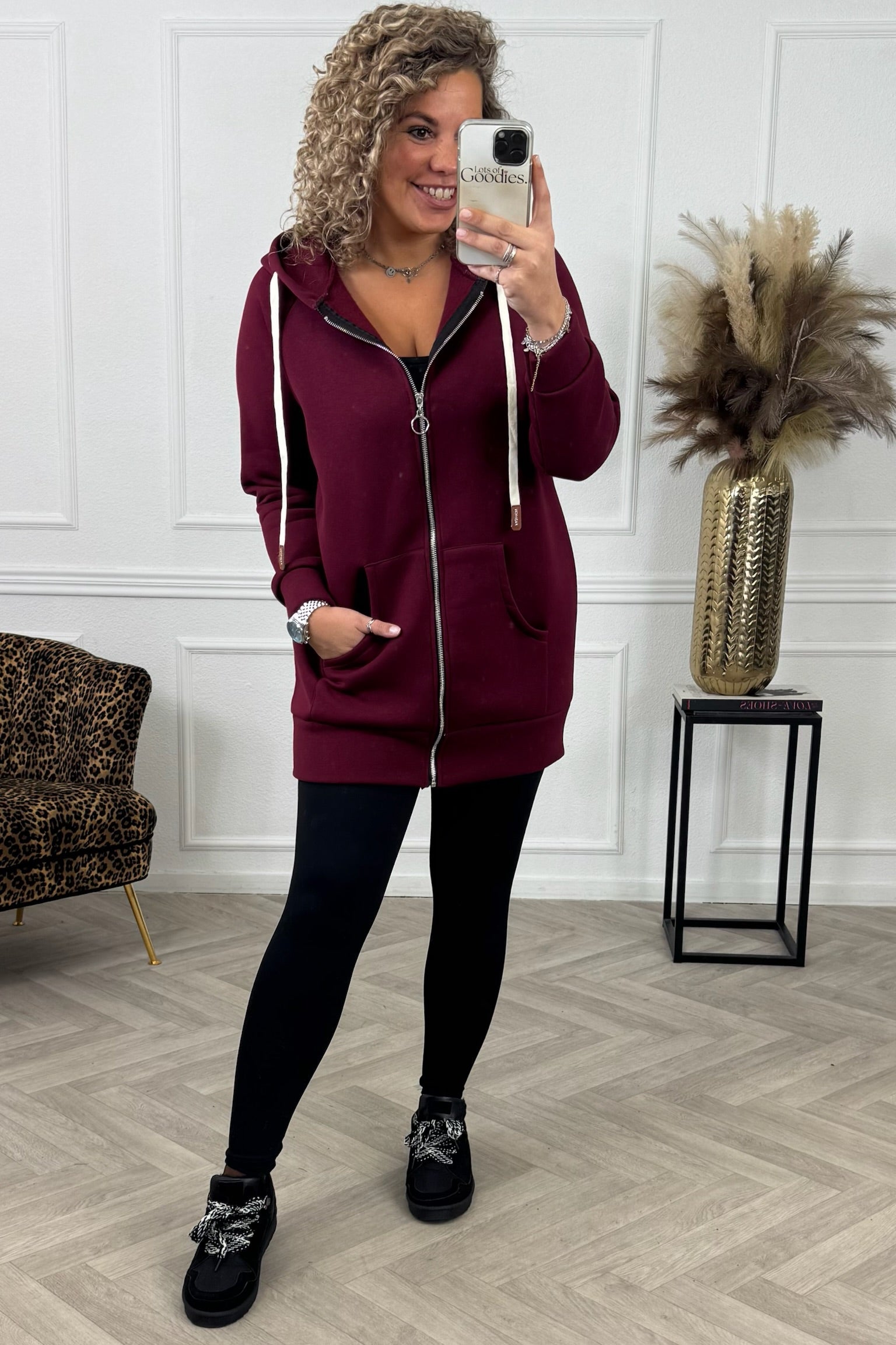Heerlijke warme vest! ideaal om als basic in je kast erbij te hebben. Shop de long zipper vest nu in bordeaux!