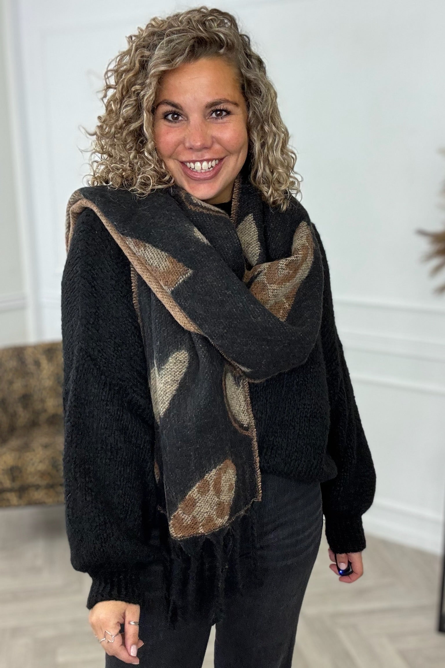 Deze heerlijke sjaal is ideaal voor de koude maanden, en ook nog eens super leuk met een hart patroon! Shop de lovely heart scarf nu in black!