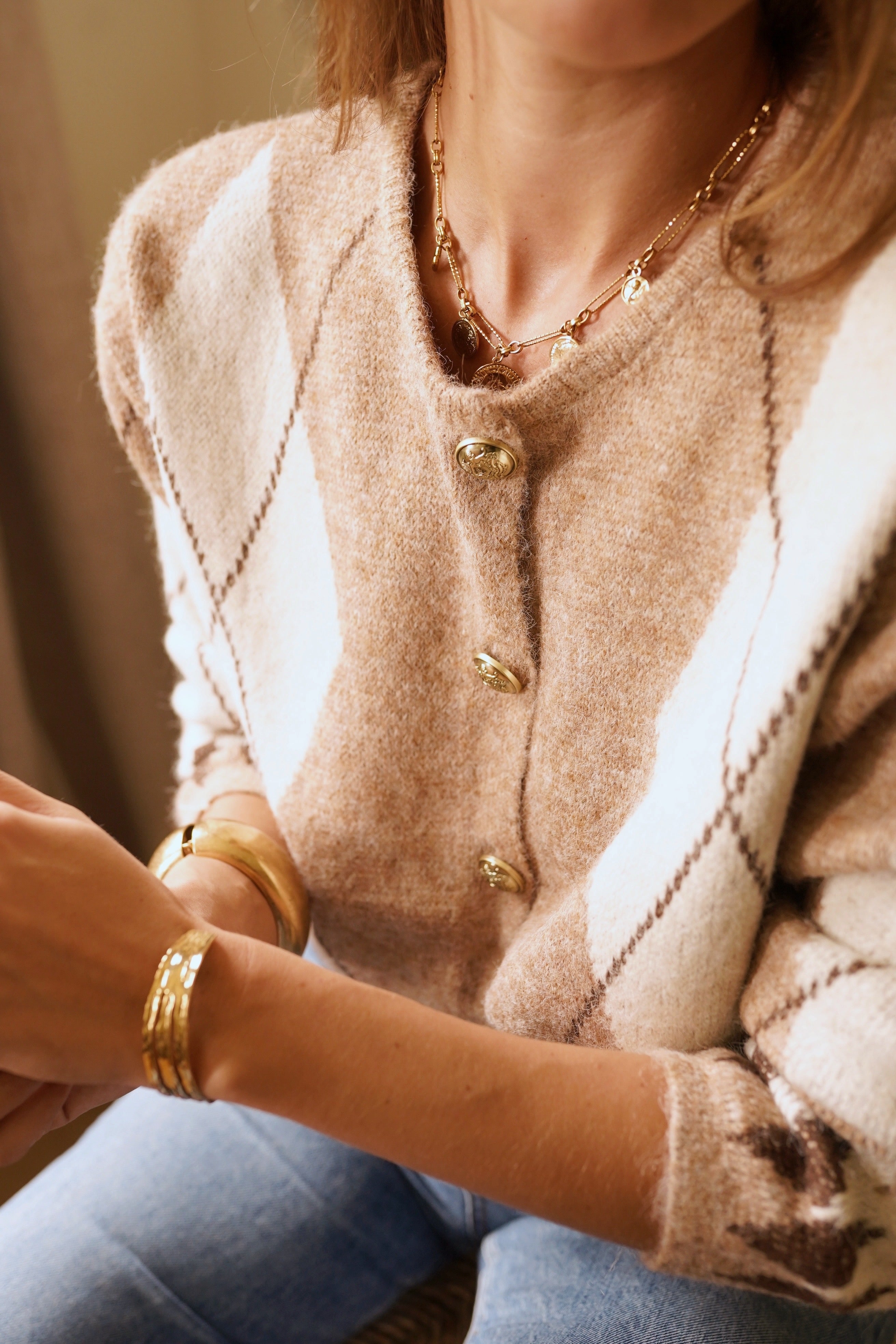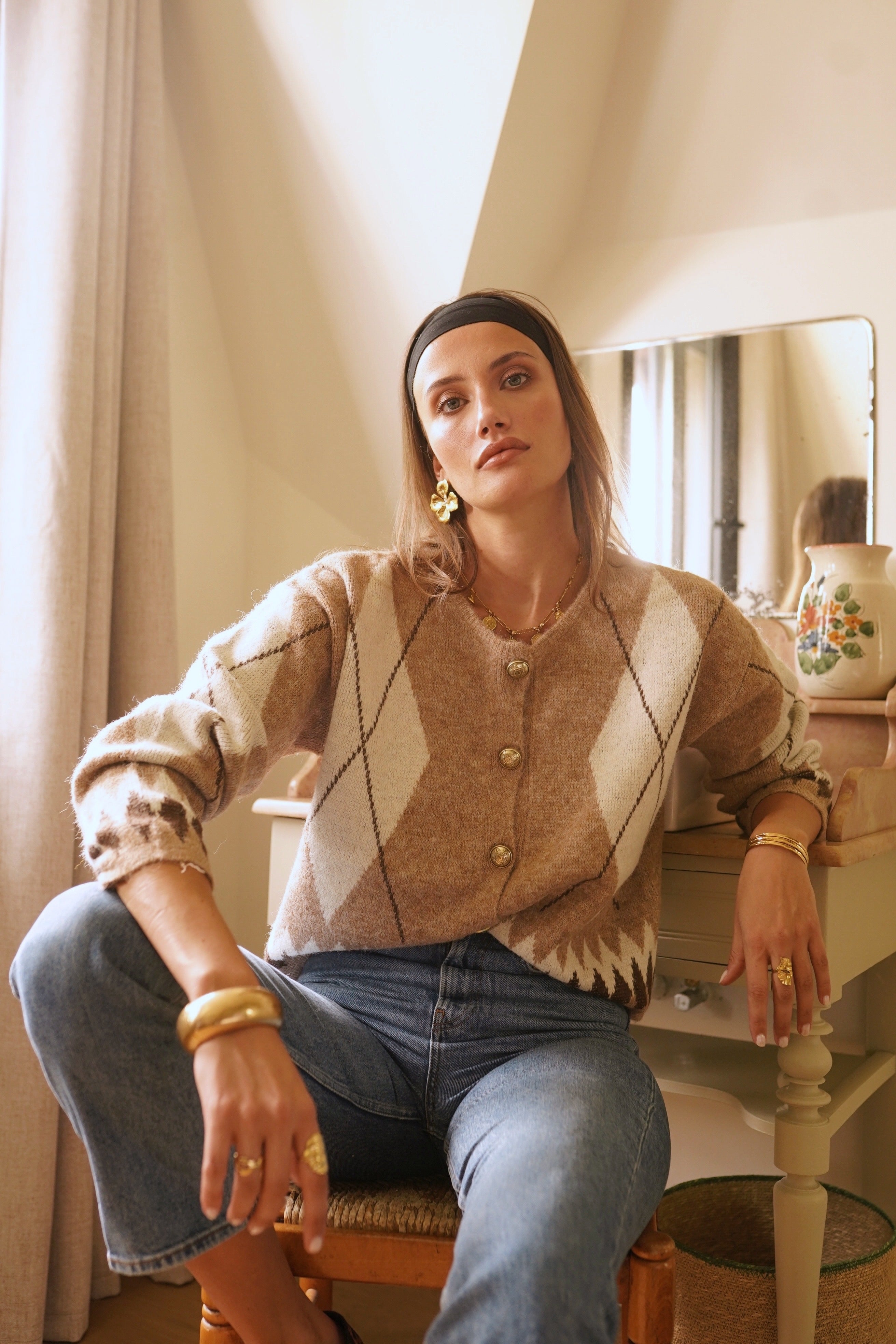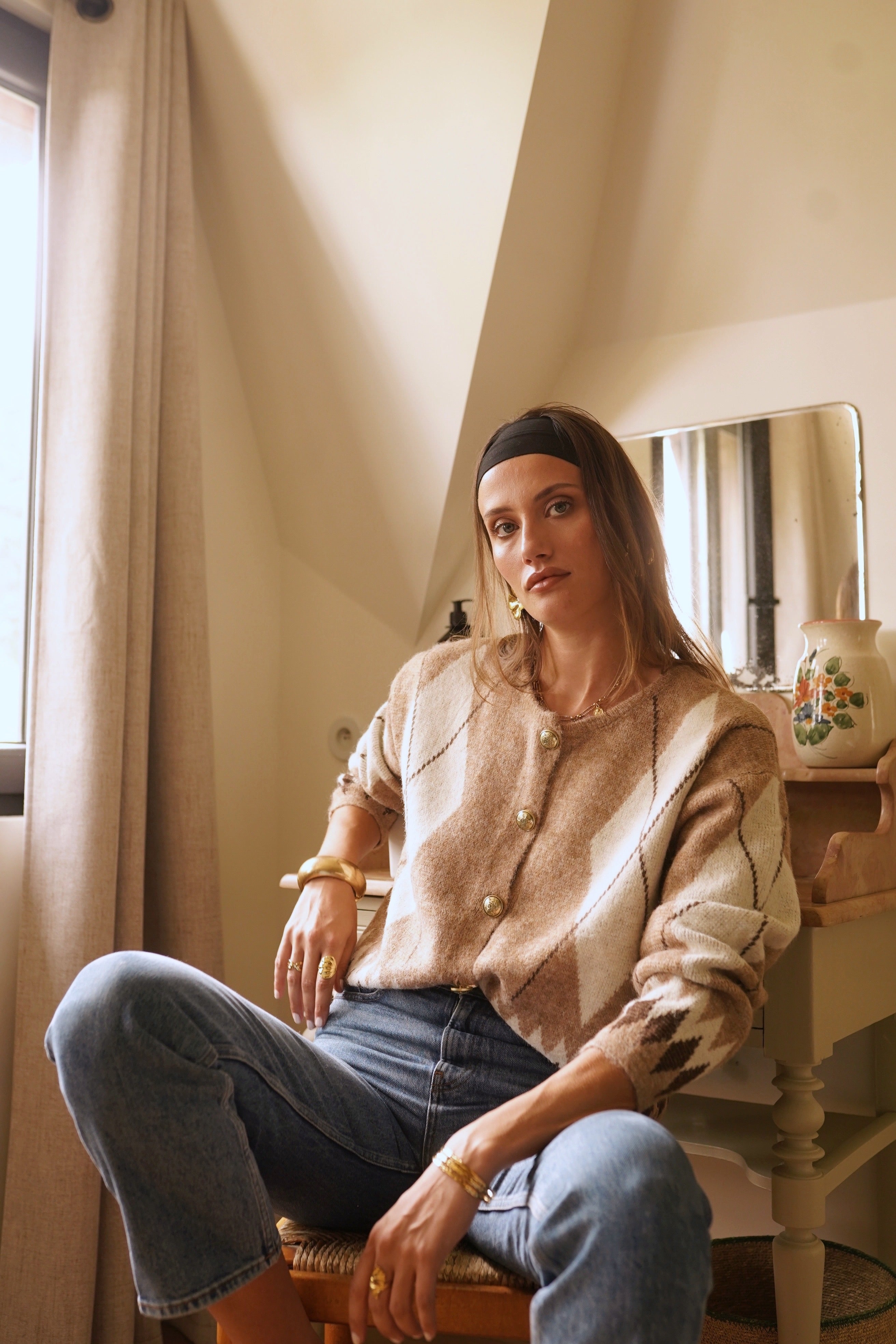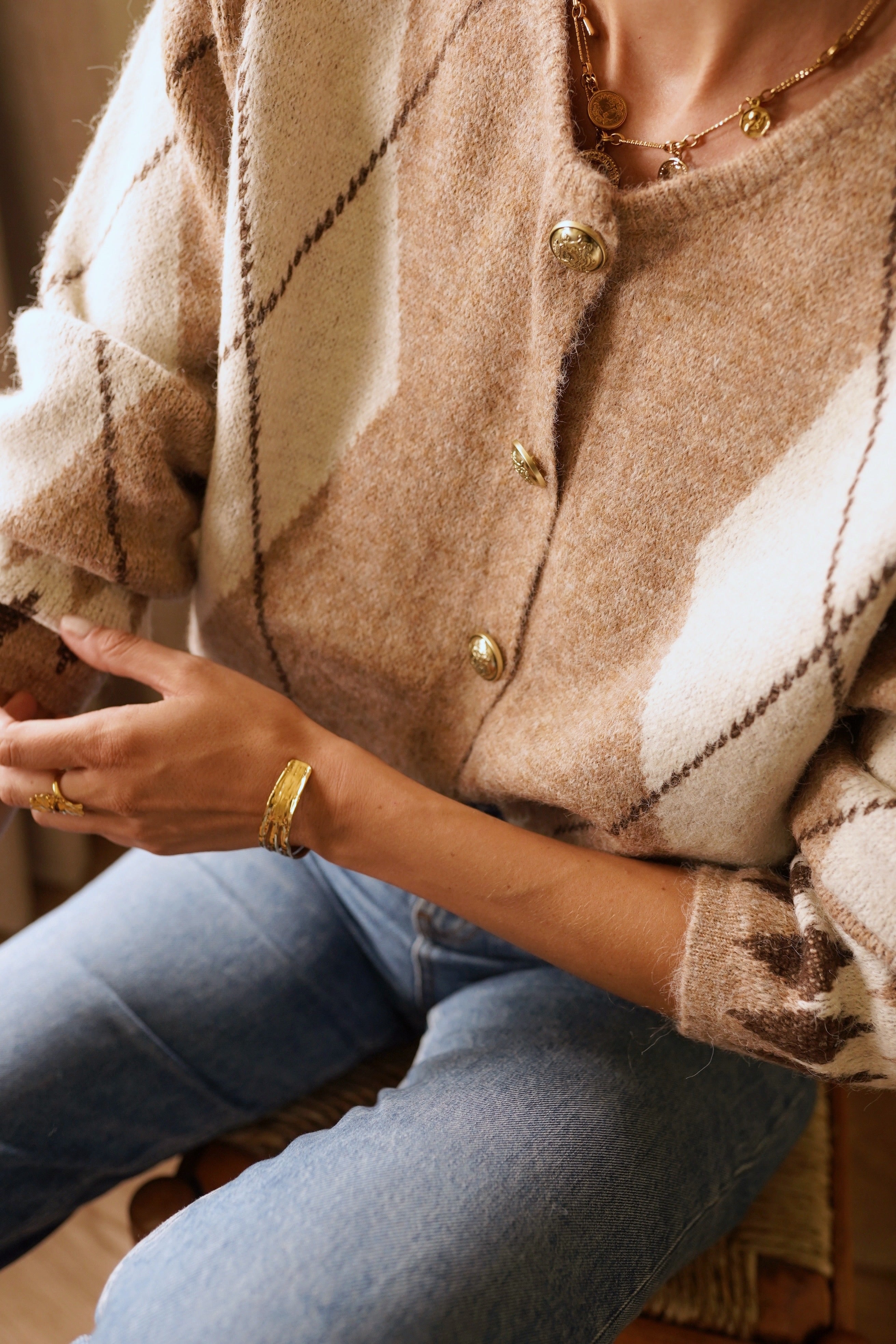 Wat een parel! Dit heerlijke vest heeft een mooi ruitmotief en zit fantastisch. Draag hem met een blouse of top eronder. Goed te combineren met een van onze jeans! Shop hem in taupe!