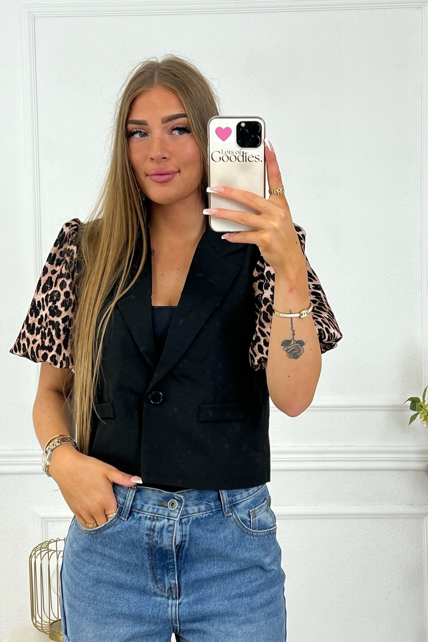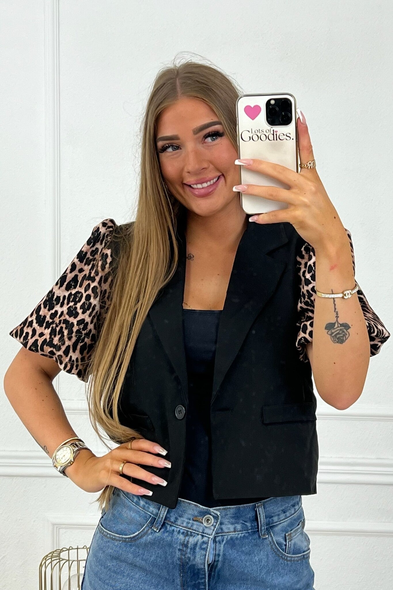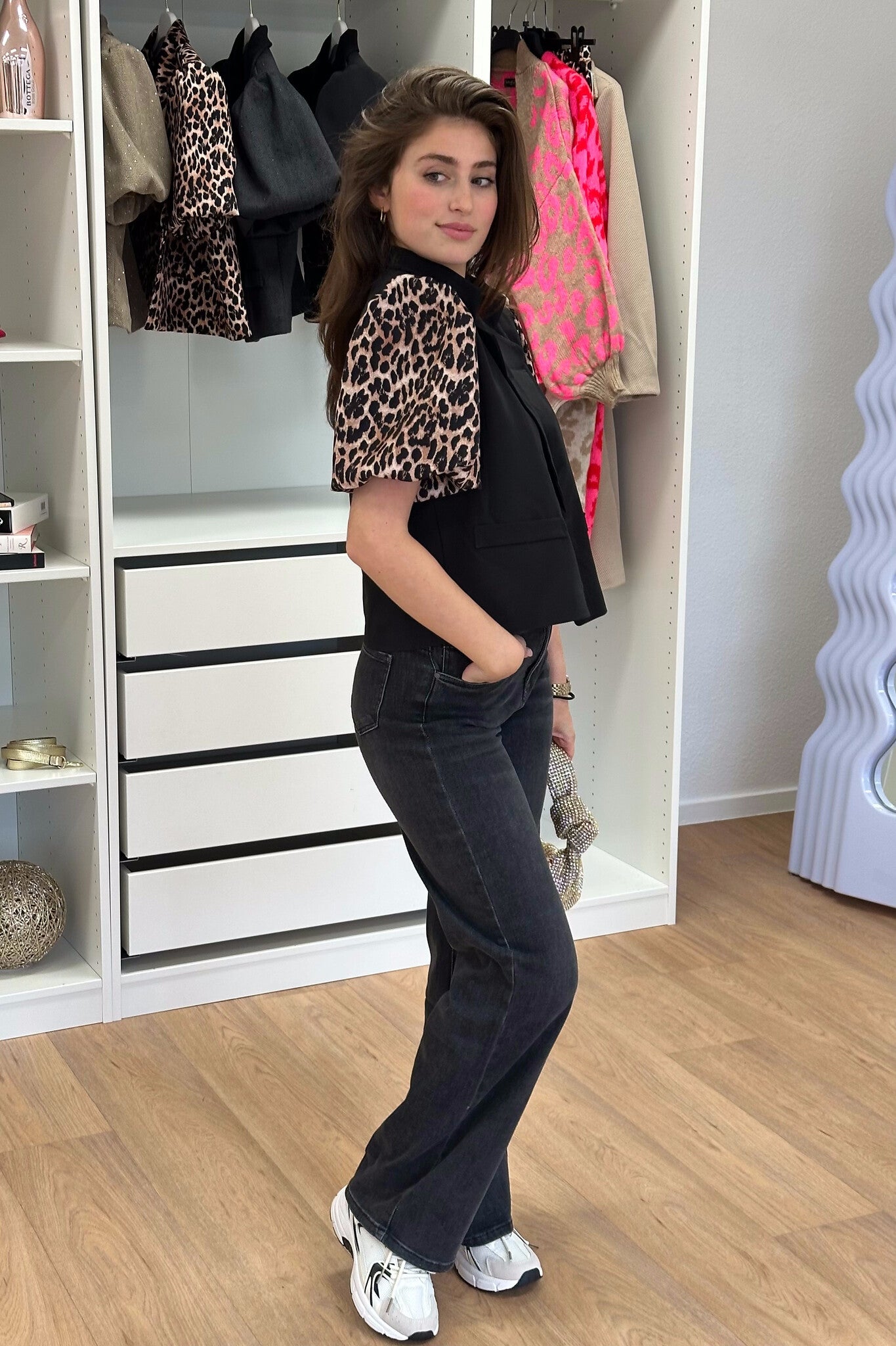 De allernieuwste trendy blazer shop je nu online! Met korte mouwen, ideaal over een jurk of tijdens de feestdagen! Shop hem in black leopard!